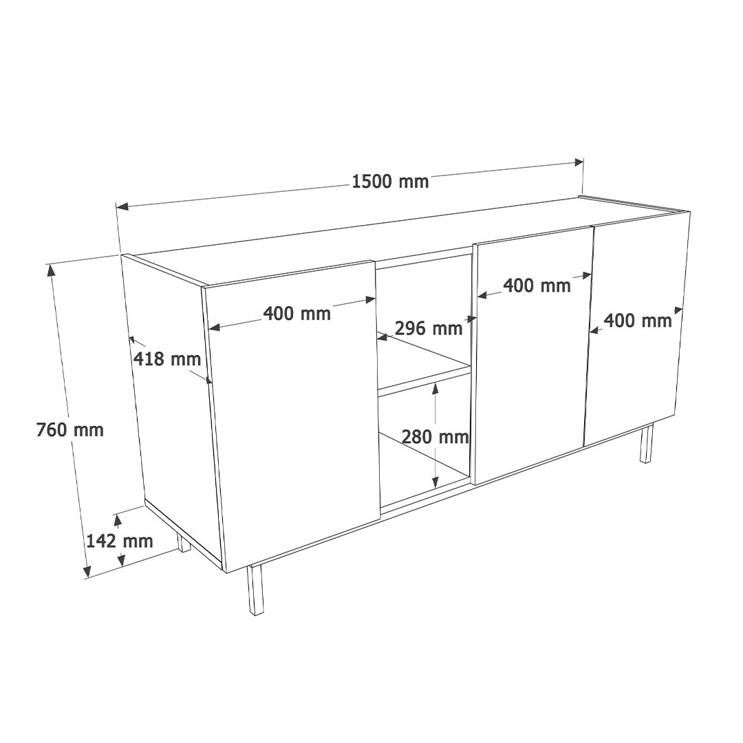Made of 18 mm melamine, the SEDRA 150 is distinguished by its robustness and durability over time. The natural beech wood legs, painted in cashmere color, enhance the stability of the construction and add a discreet touch of natural quality that highlights the overall design.