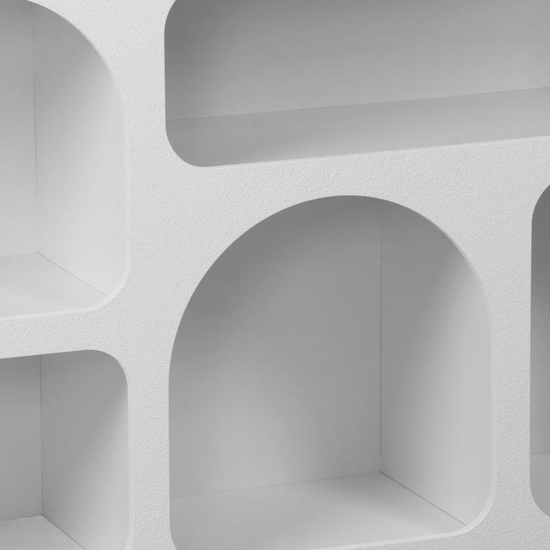 •Features six open shelves for organizing items or displaying decorative pieces.