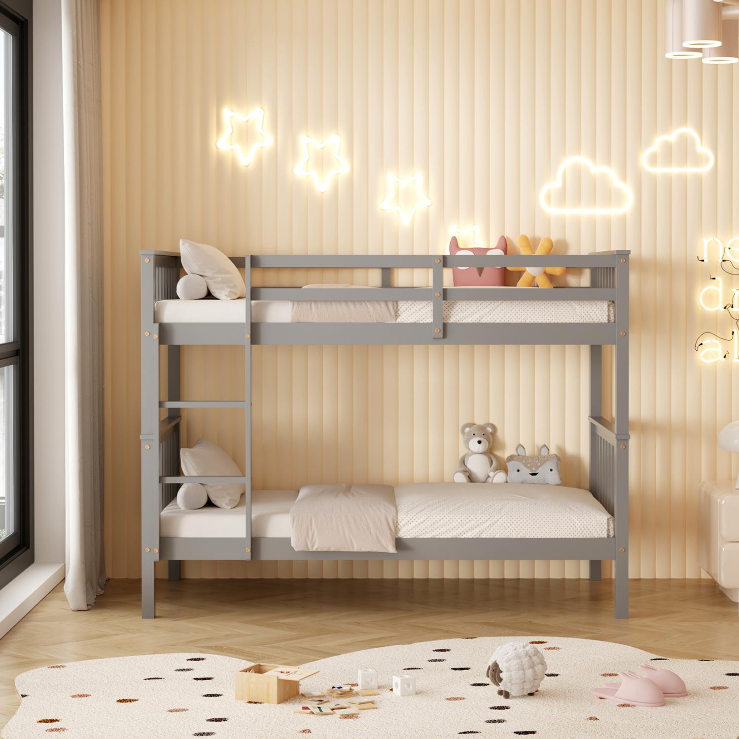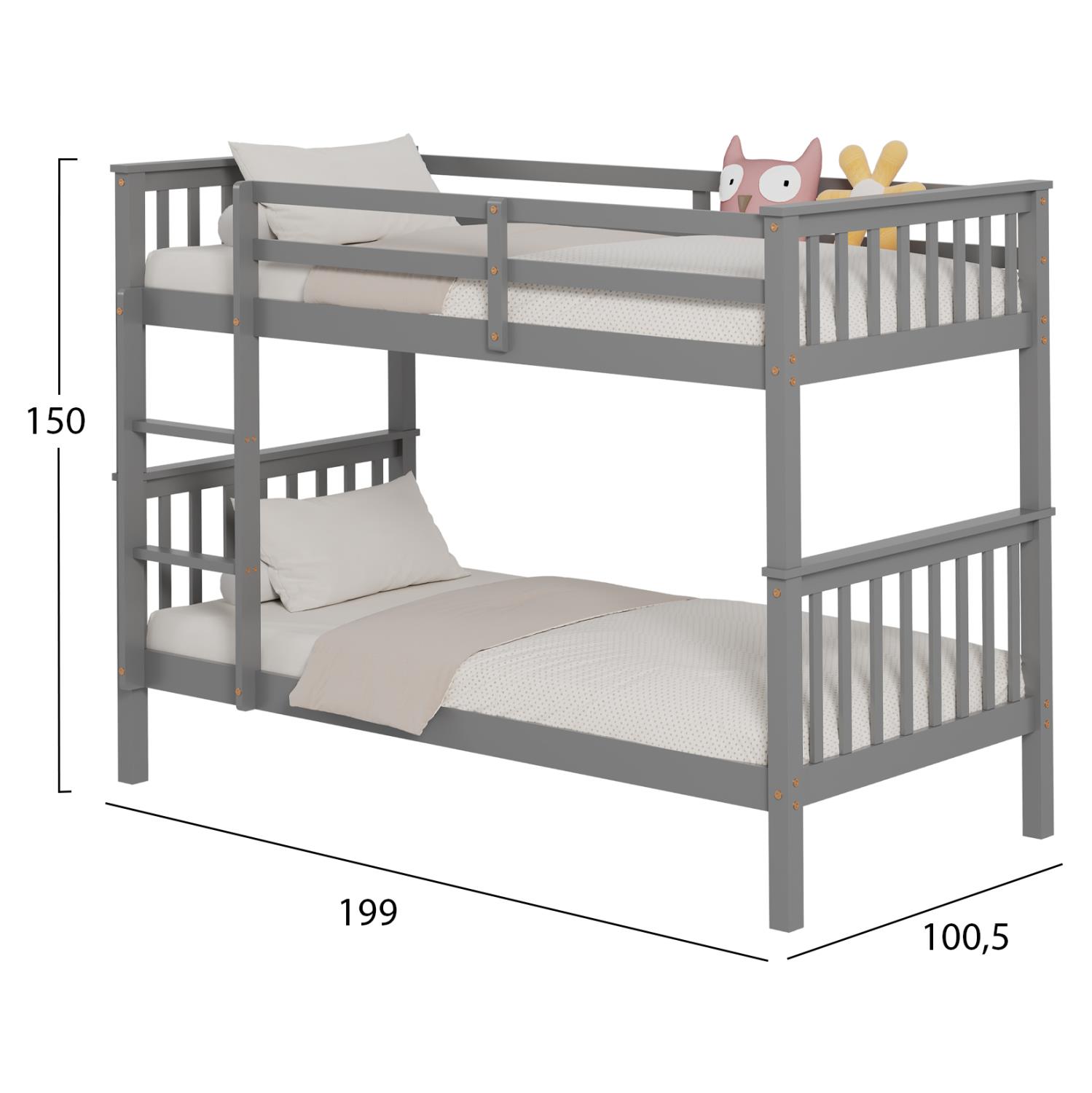Κουκέτα - Κρεβάτι Παιδικό LANTAI απο Ξύλο Πεύκου σε Γκρί για στρώματα 190x90εκ