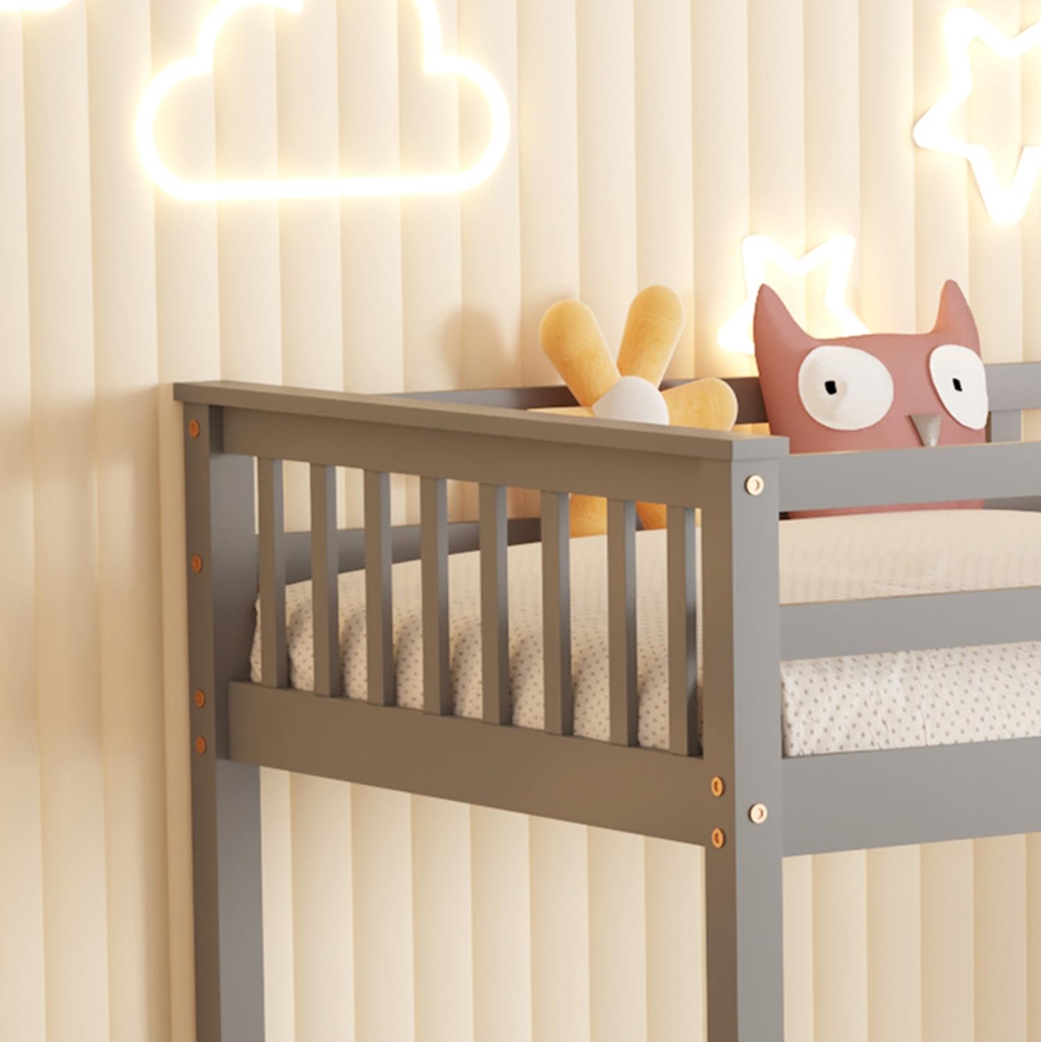 Κουκέτα Παιδική με 2 Στρώματα LANTAI Ξύλο Πεύκου σε Γκρί Απόχρωση 90x190εκ