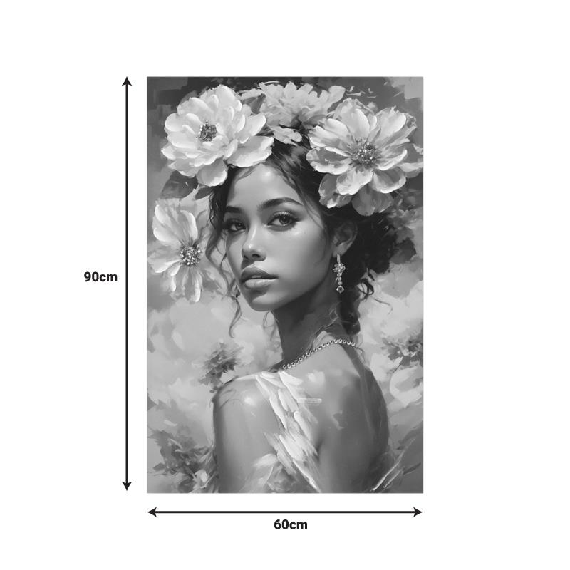 The Lilibet Ι canvas painting is a beautiful and striking work of art that celebrates feminine beauty and purity. The woman's face is the central point of interest. Her features are strong and expressive, conveying a sense of tranquility as well as power and self-confidence.