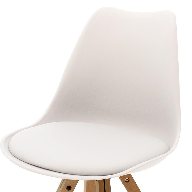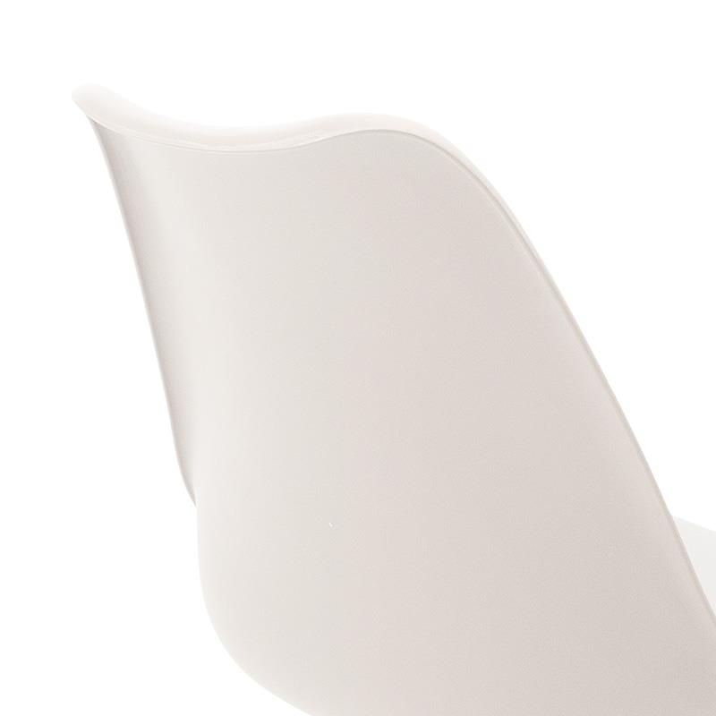 - Back made of polypropylene with great durability and resistance to wear. It follows the spine supporting the waist with a curved finish at the top, offered in white.