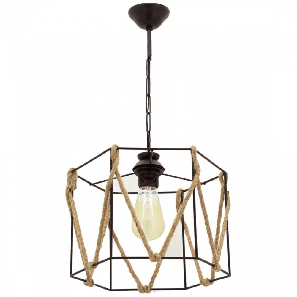 EKSEN single light hanging ceiling lamp with metal frame and rope lining in black color Φ30x58cm.