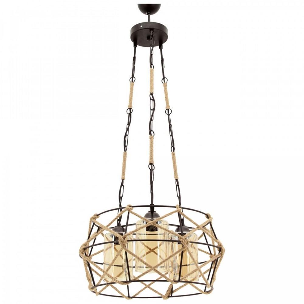 MINA three-light hanging ceiling lamp with metal frame and black rope lining Φ48x106cm.