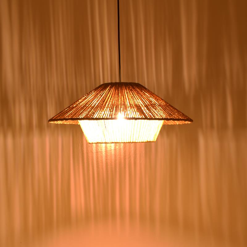 • Made of rope. "Rope" is a type of cord made from fibers. The use of rope gives a sense of naturalness to the space. Additionally, the rope light fixture is lightweight and easy to install, while also adding a unique touch to the room's decor.