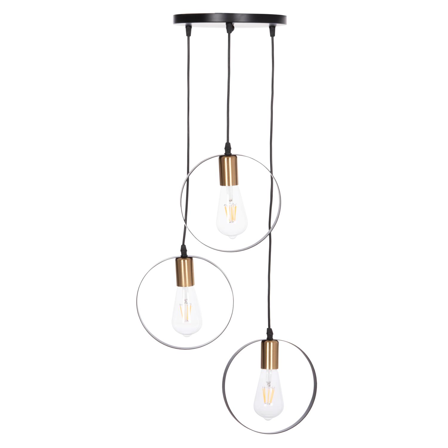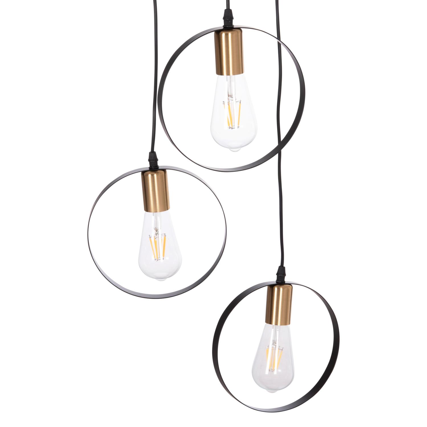 The KRENT pendant ceiling lamp is a 3-light pendant with each light on different height. The bulbs are placed in gold sockets while the caps impress with its minimal design.