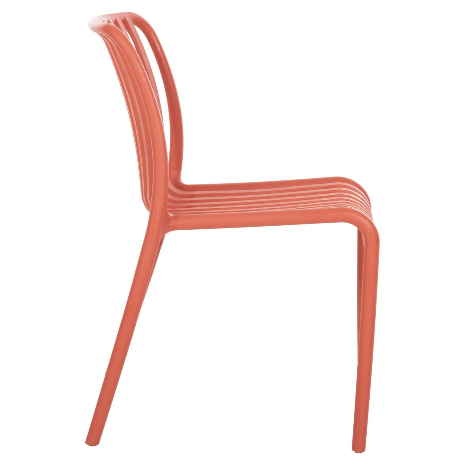 The CONVEE chair is a classic outdoor chair that will meet your every need in your backyard or balcony. It is of high quality and elegant in appearance, while the curved seat in the front makes it very comfortable, and it is sure to catch the eye. The entire chair is made of one-piece polypropylene bars in RED color. The chair is stackable, light, and comfortable, an ideal choice even for professional use, such as in catering, etc.