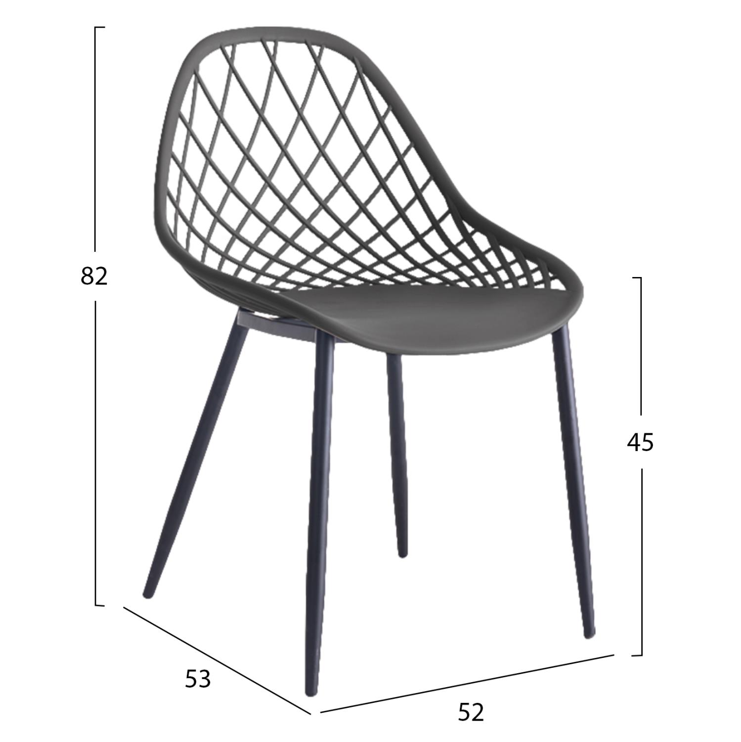 The LIO C9524.10 chair has everything you would want from such a piece of furniture. It's quality and elegant in appearance, and definitely an eye-catcher. The back and seat are a one-piece molded polypropylene piece in GREY color. The back, in fact, has a "mesh" shape, which makes it pleasant and light. The base of the seat and the legs are metal in MATTE BLACK color. The whole construction is light and comfortable, and it will become the favorite seat in any space thanks to its practicality. Ideal choice, also, for professional use, such as in catering, etc.