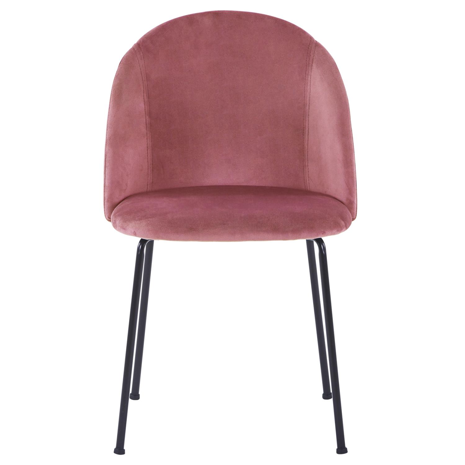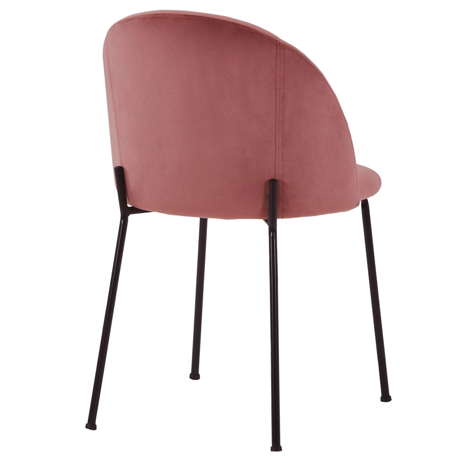 CLARA chair lined with velvet in dusty pink color and metallic legs in matte black.