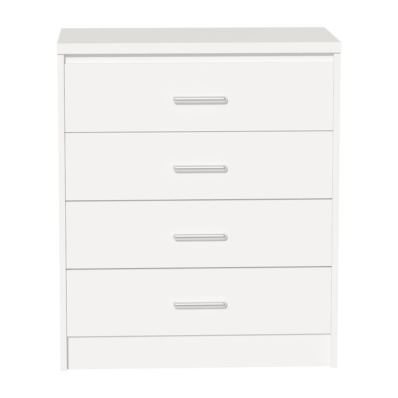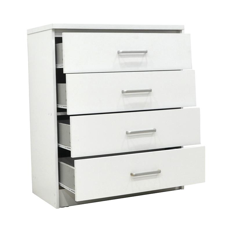 - It has four large sliding drawers in white color.