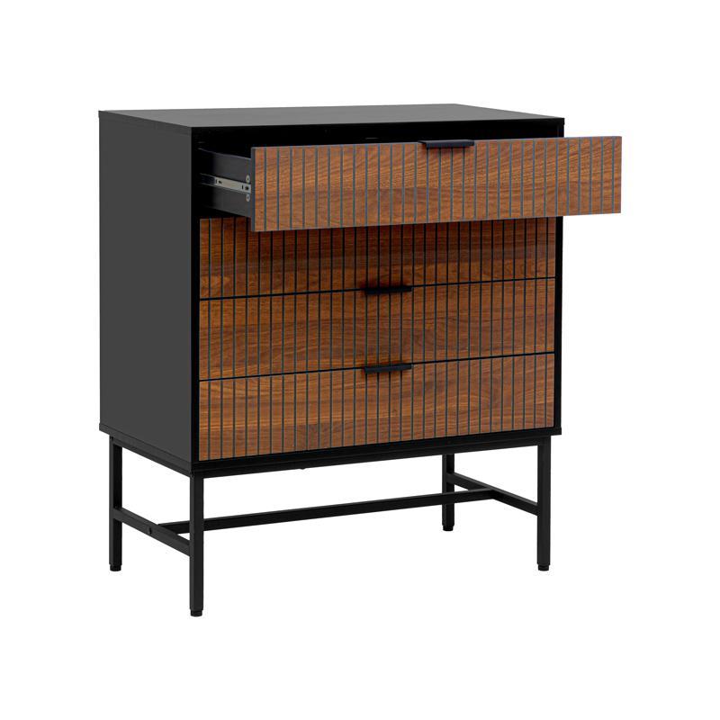 It has four spacious drawers, ideal for storing clothes, linens, documents or accessories. Each drawer glides smoothly and offers convenient access, while the sturdy construction guarantees stability and long-term use.