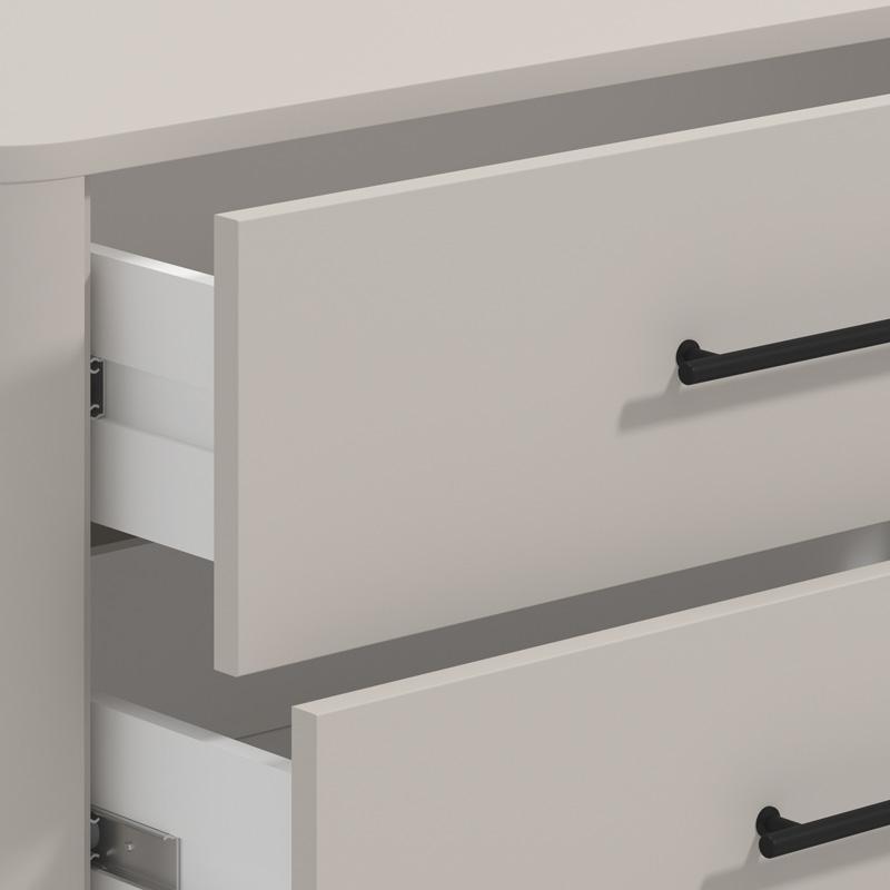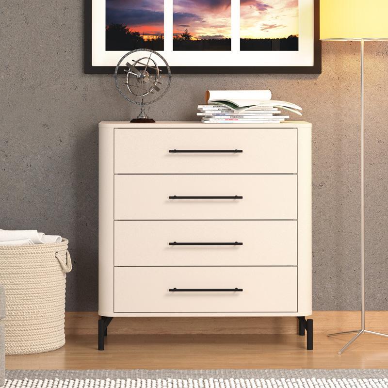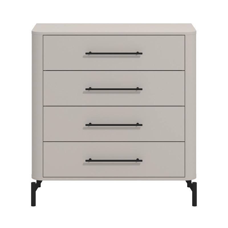The Cashmere shade adds a sense of discreet luxury, while the metal handles and metal legs enhance the modern aesthetic and offer stability and durability. Made with an emphasis on detail, the chest of drawers combines durable materials and quality construction for long-lasting use.