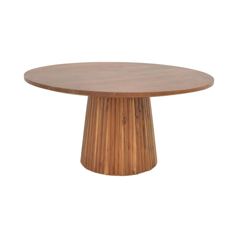 The impressive round Canicule II table is an elegant and functional addition to any contemporary space. Crafted from high-quality acacia wood with a rich, warm tone, it creates an inviting atmosphere with timeless appeal. A piece of furniture that combines high quality with enduring design.