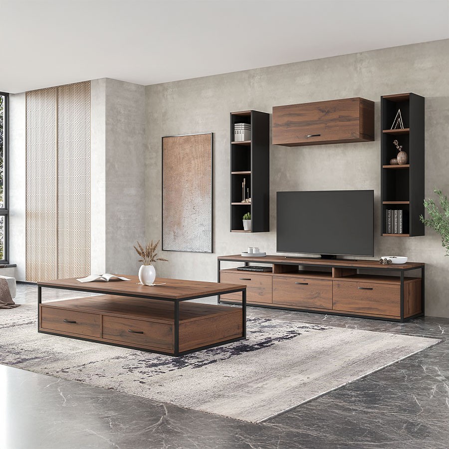 The KAREN coffee table offers a modern and refreshed tone, making it an excellent choice for any modern living room. Its rectangular shape offers comfort and functionality, while the four drawers provide additional storage space for organizing your items. In addition, it features an open storage space, offering greater convenience for storing remote controls, magazines and other items for immediate access.