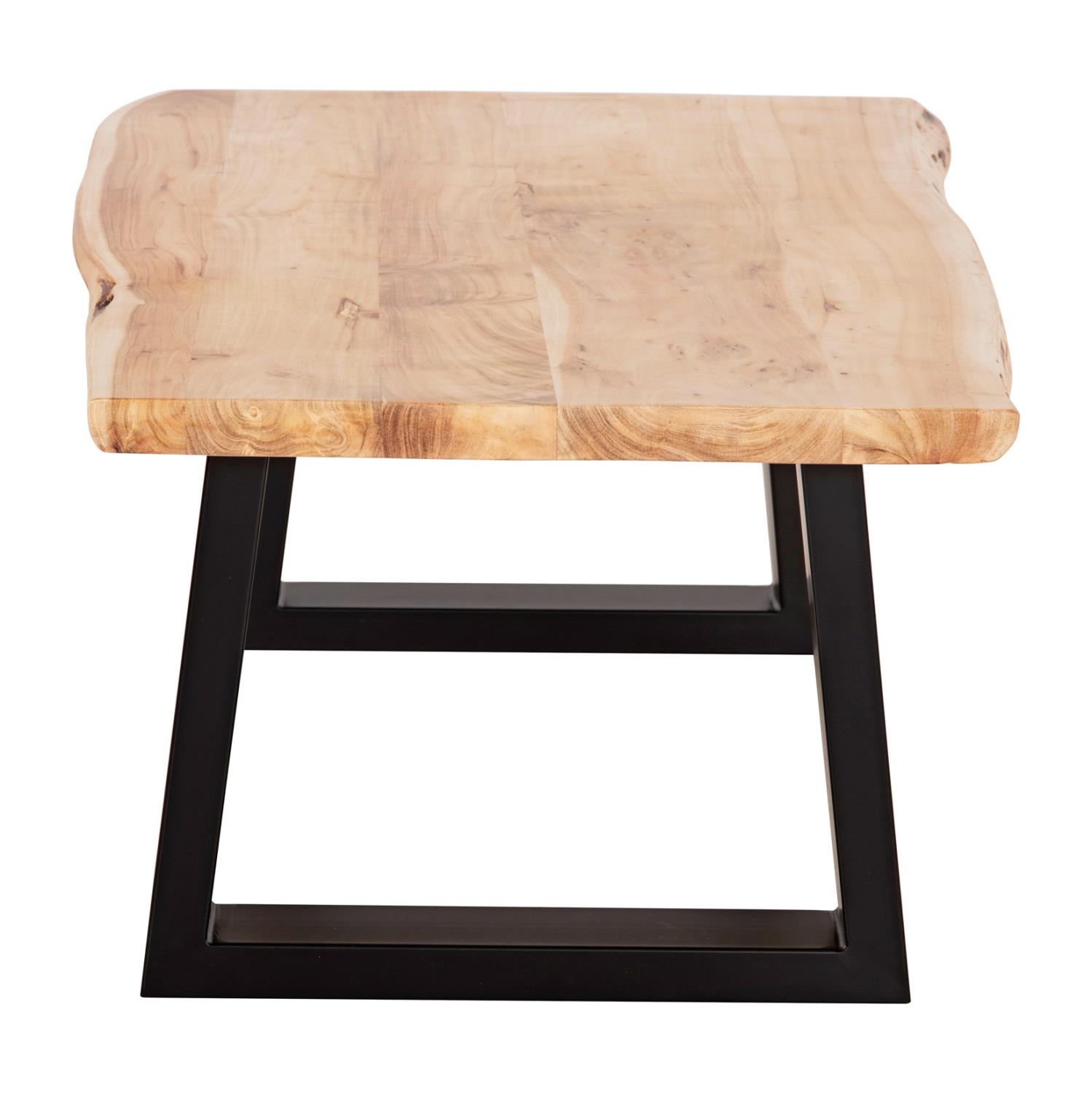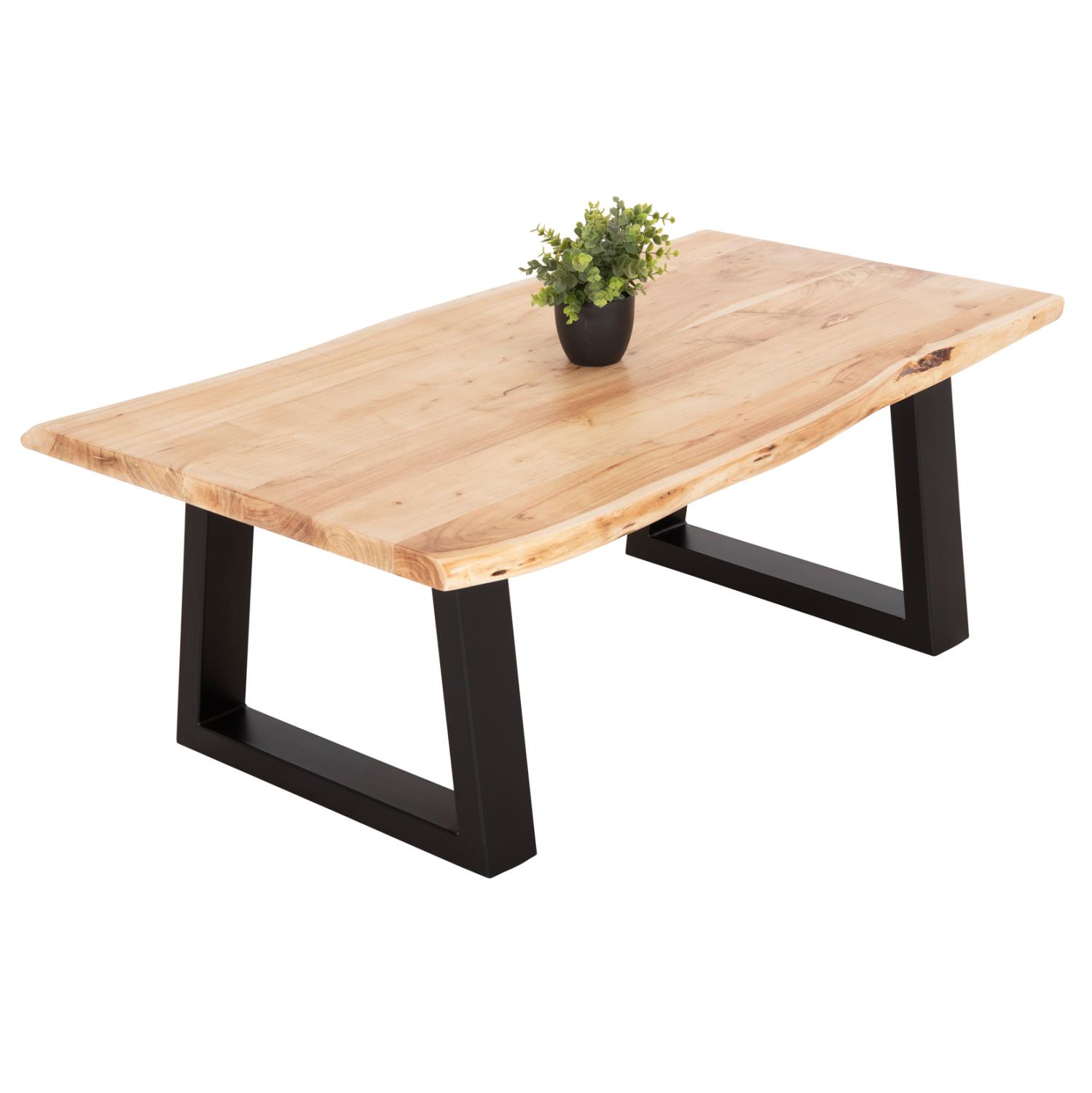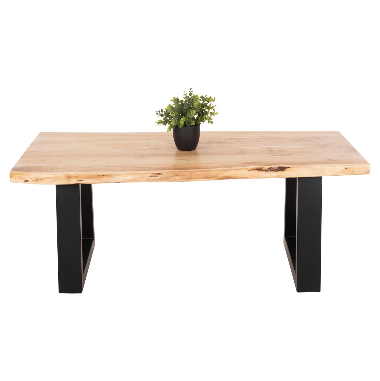 Discover the unique handmade table ΜΟΝΤΑΝΑ with natural solid ACACIA wood surface in NATURAL color. The shape is rectangular and rests on two black metal bases with a trapezoidal shape. The modern design meets nature and gives a timeless and warm feeling to your space. Combine it with a nice sofa and get the living room you've always wanted. It is timeless and can be combined with many colors and various decoration styles and is sure to upgrade your space!