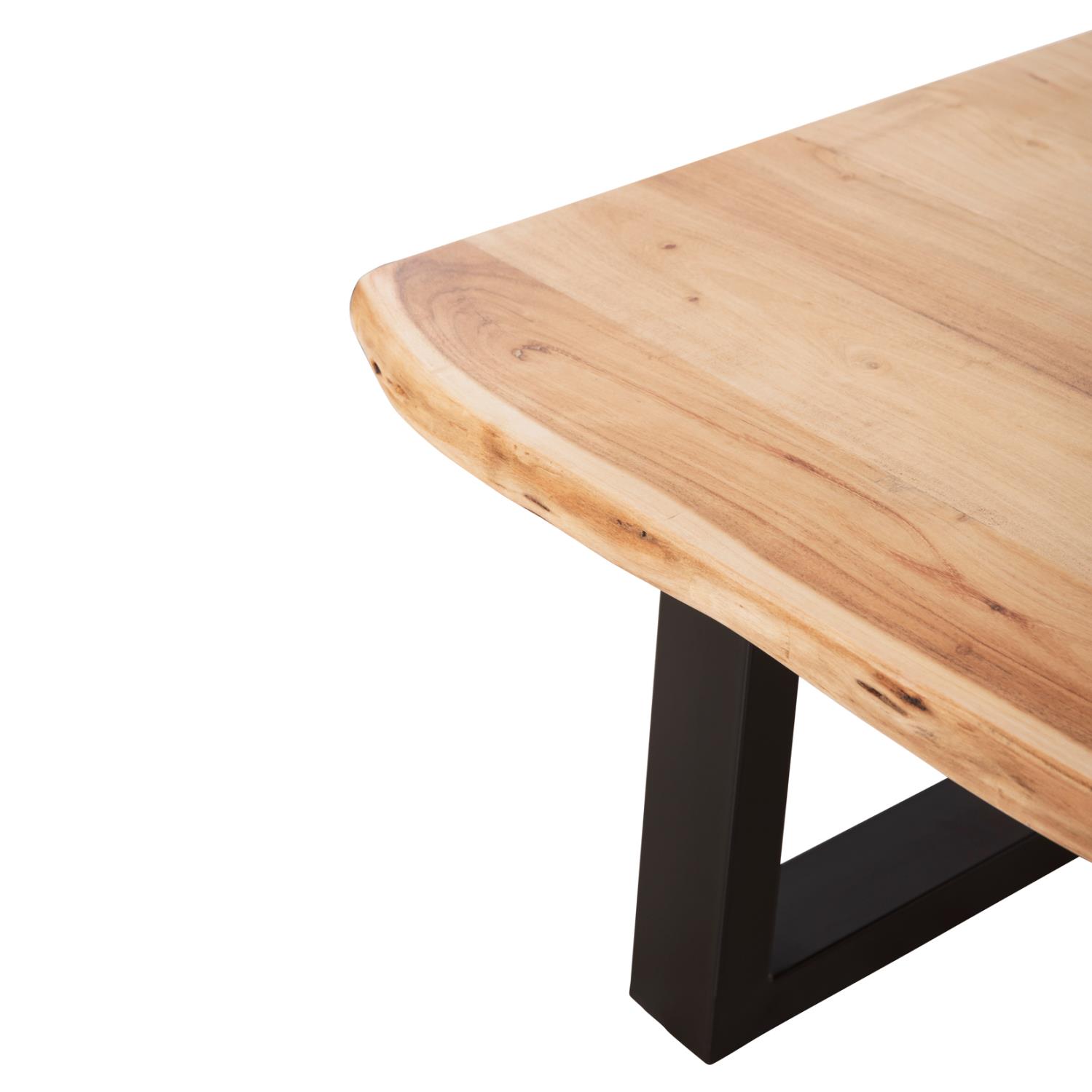 The tabletop is made of natural solid acacia wood and each one is unique due to the unevenness of the tree trunks. When we refer to solid wood, we mean wood made entirely from the trunk of a tree. Solid wood is the most expensive choice in terms of wood but stands out for its timeless aesthetics.