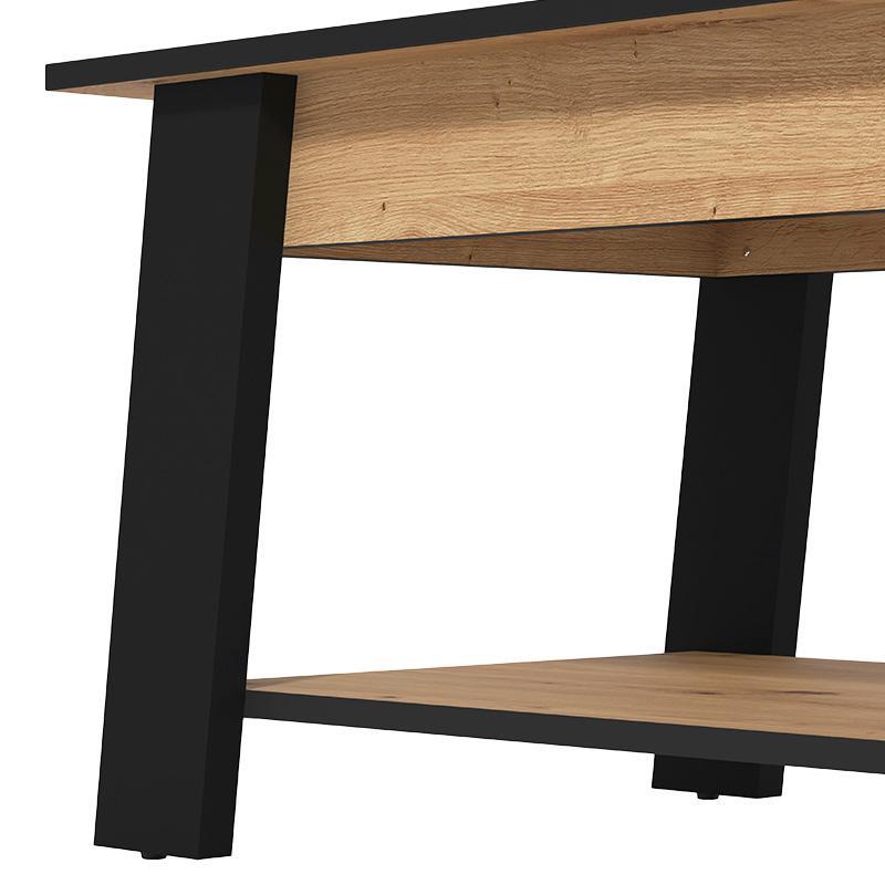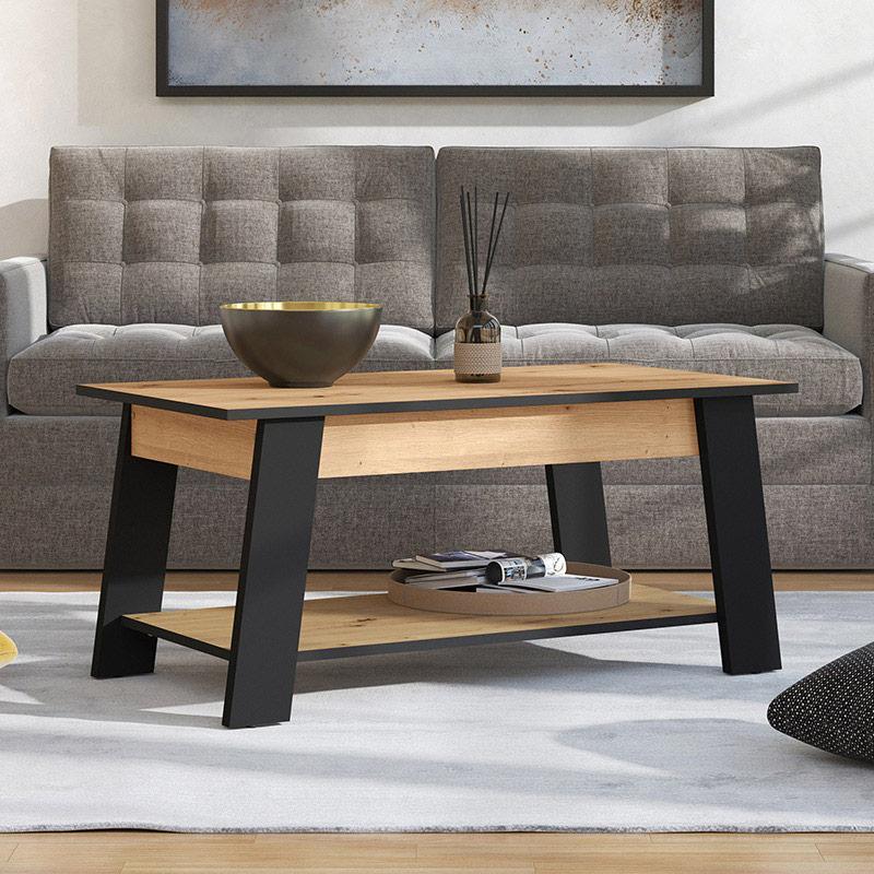 The Piave lounge table in artisan oak with black matte details and practical shelf is the perfect choice for those who want to add a combination of elegance, functionality and modern design to their living room. Its timeless design allows it to be easy to adapt to any style of decoration, from modern and minimal to industrial and classic.
