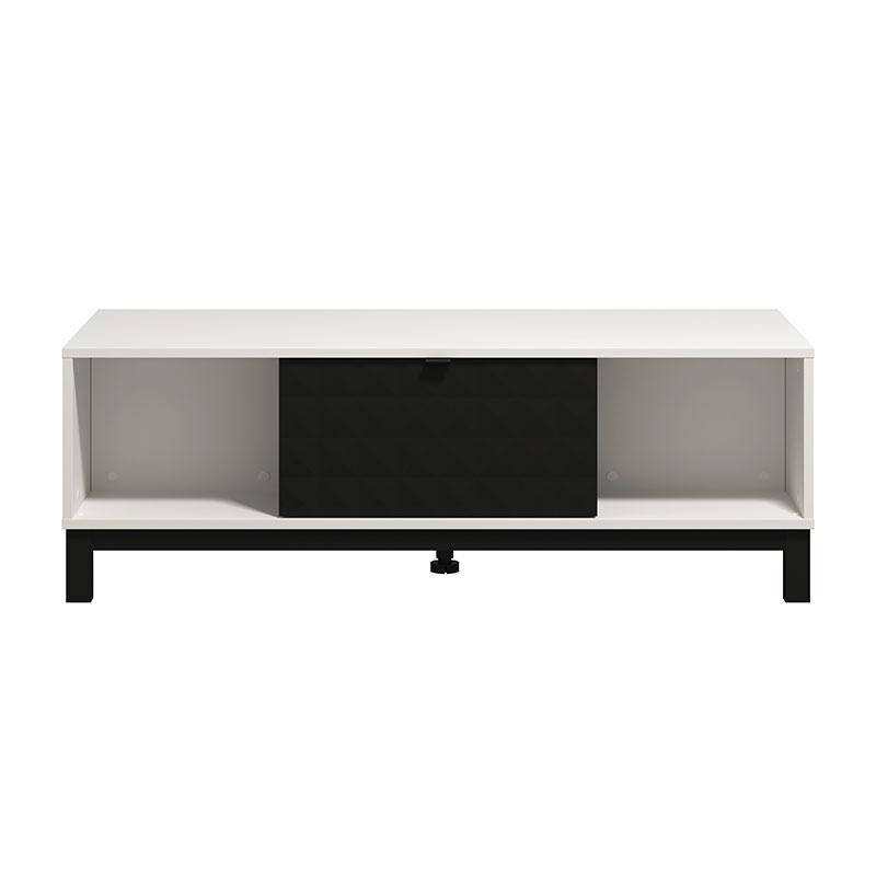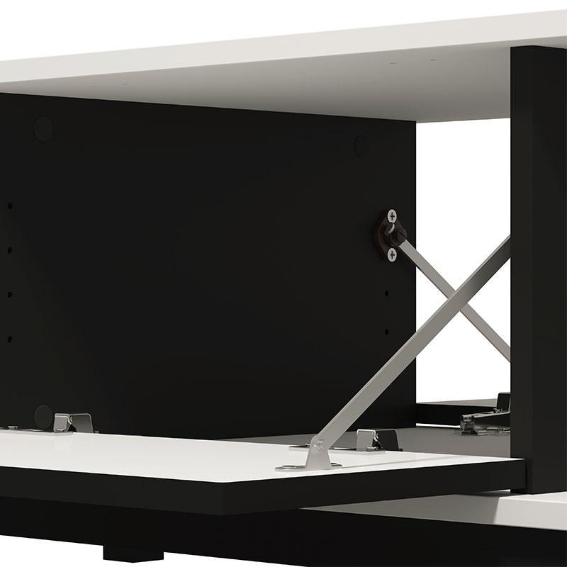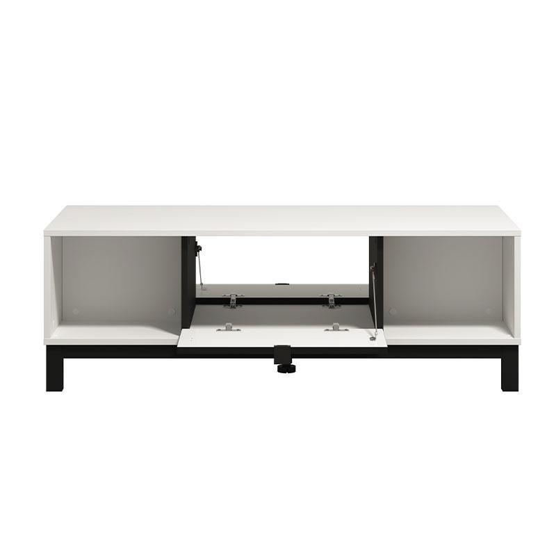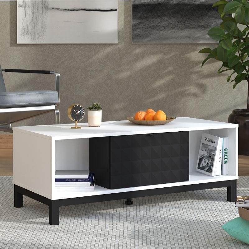 The Sarthe lounge table in white with black, cabinet and open storage is the perfect choice for those looking for a furniture that combines practicality, functionality and modern aesthetics.