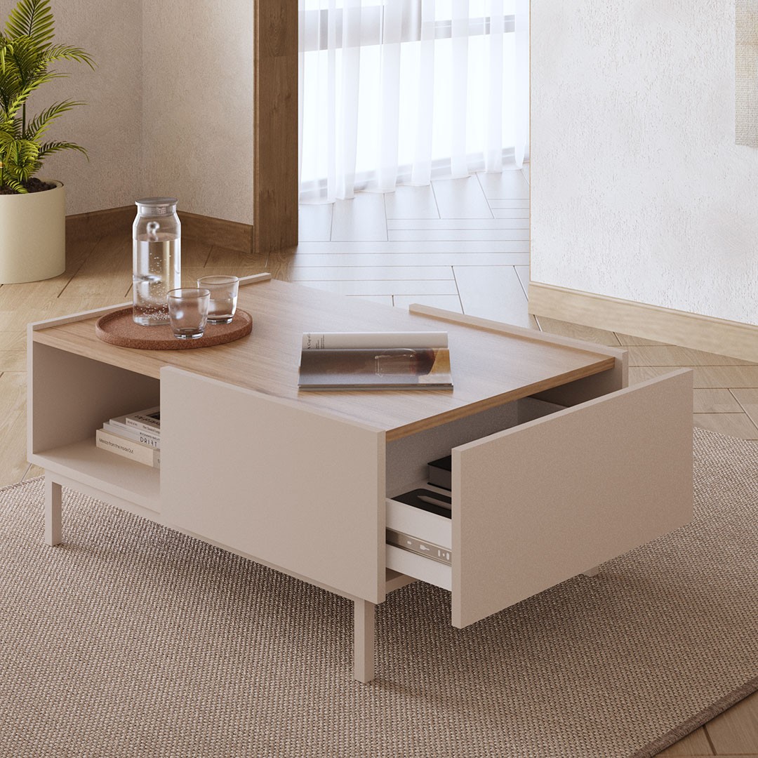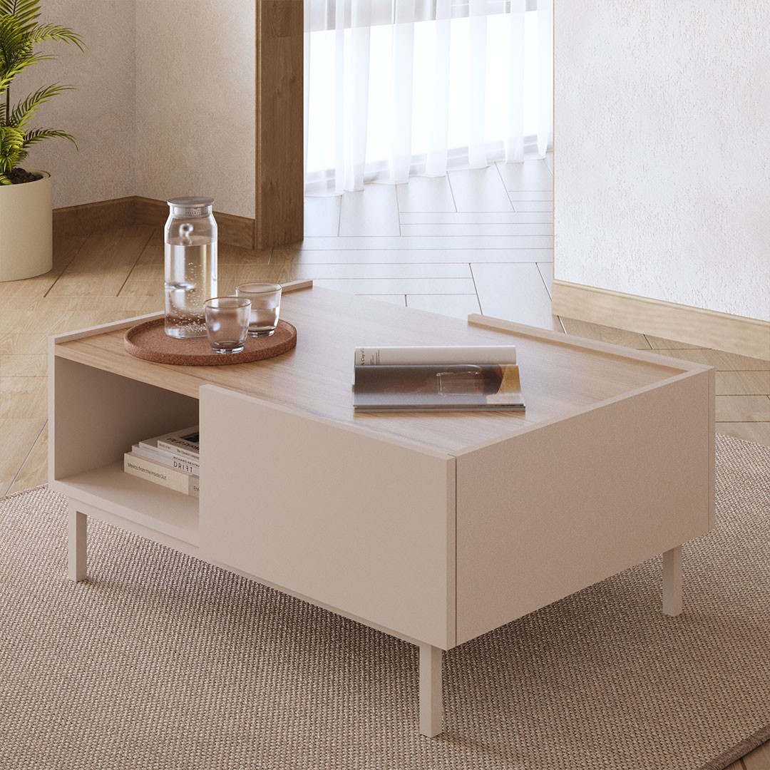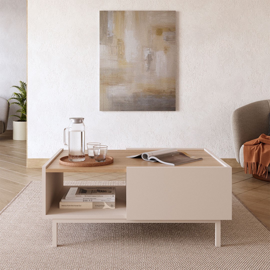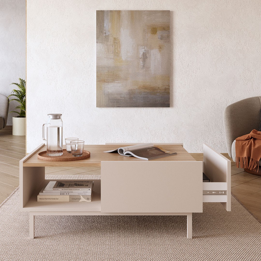 The center of your living room deserves a piece of furniture that combines aesthetics and practicality with absolute balance. The SEDRA coffee table is a modern proposal that harmoniously completes the space, maintaining clean lines and a minimal design, combining the strong presence of the cashmere color with a discreet oak wooden surface, creating an elegant, bright and completely contemporary result. Its discreet elegance makes it ideal for both modern and more timeless living rooms.