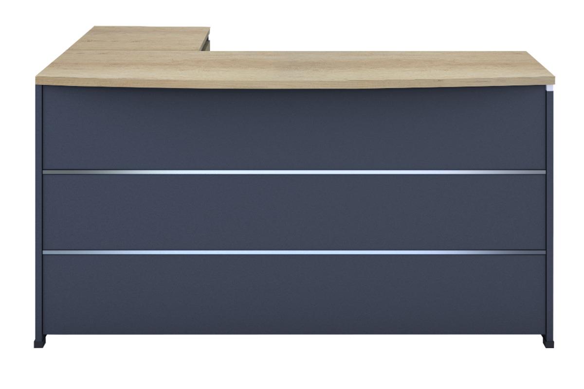 Smart solutions are at hand with the Lotus table. A Modern L-shaped design, this oak-dark grey table is a blend of form with function. The Lotus table has an enclosed a cabinet. The corner is placed on the right or left side of the user to enable easy access to files and documents.
