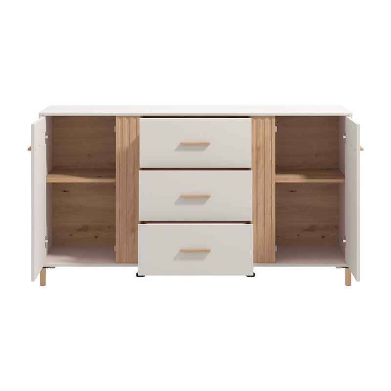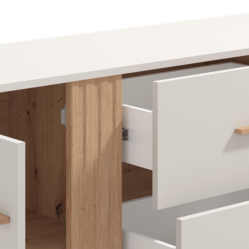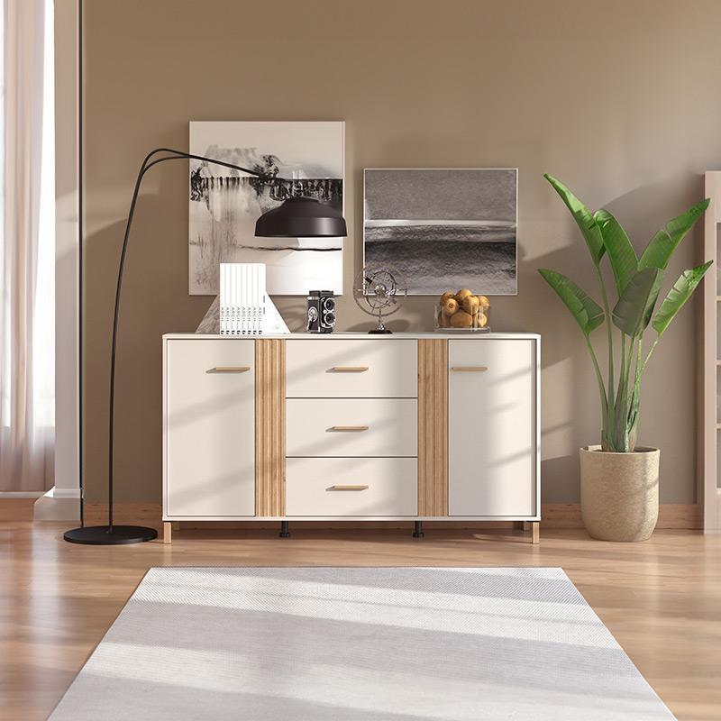 The Belfort dresser from the Belfort collection is the ideal choice to add functionality and style to your space. With its elegant combination of cashmere and artisan oak colors, this dresser will enhance any room, from the bedroom to the living room or hallway. Designed to offer ample storage space, the dresser features three drawers and a combination of three closed spaces to store organized clothes, accessories or personal items.