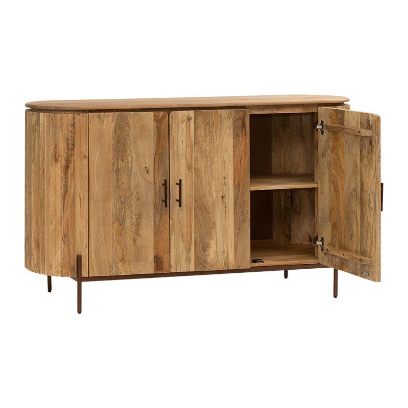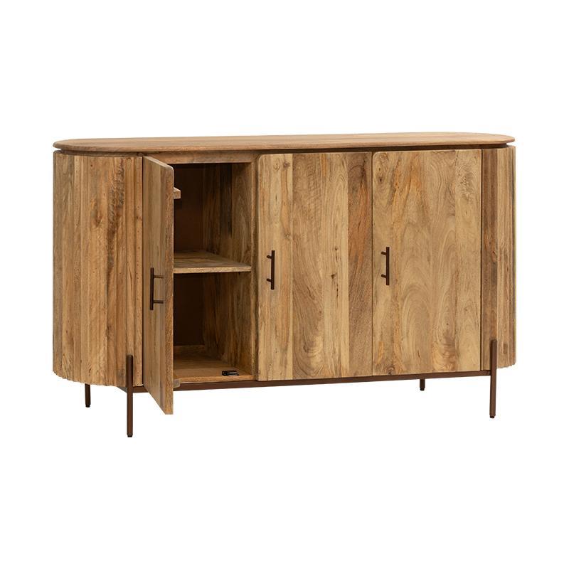 The Bhopal dresser in Golden Brown is the perfect addition to upgrade your space with style and functionality. Its unique design combines natural Mango Wood with iron legs, creating a great balance between the warmth of wood and the feel of industrial style. The Golden Brown color offers warmth and makes the dresser fit harmoniously in any room, while its construction ensures long-lasting use and durability.