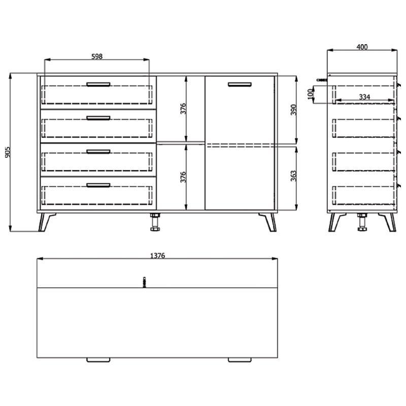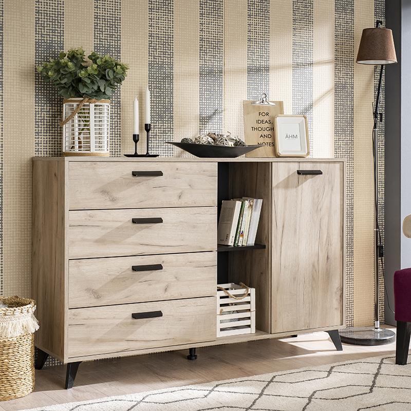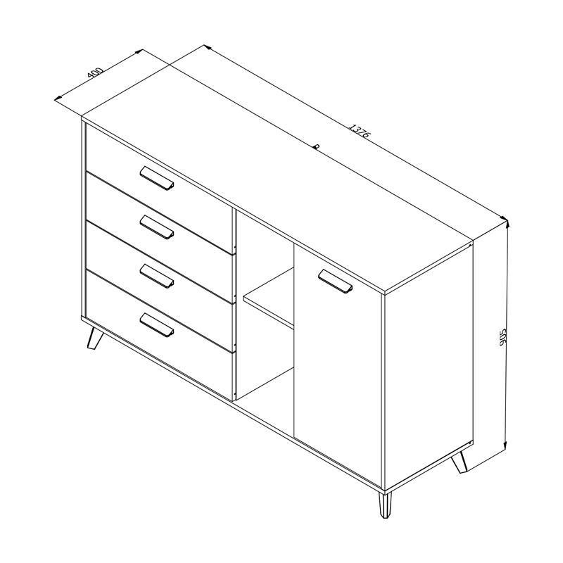 The UMBRIA 3K4F dresser is an excellent choice for any home that seeks functionality and contemporary design. With the colors Grey Oak and Black, it offers a natural and warm feel to your space. Its elegant and practical design includes three sections, four spacious drawers and a single-leaf open section with internal partitions for organized storage. The UMBRIA dresser combines aesthetics with usability, making it ideal for a bedroom, living room or hallway.