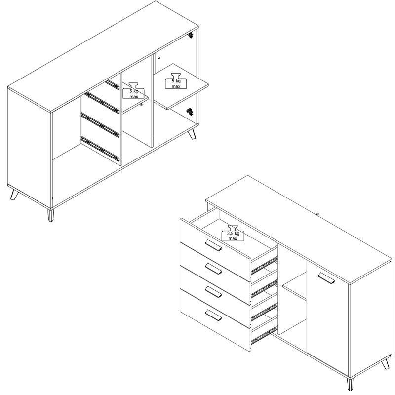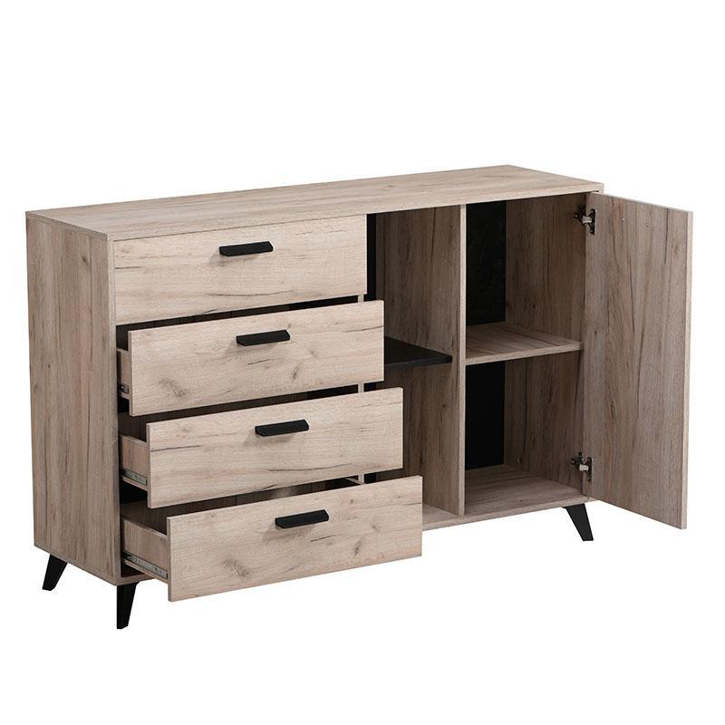 Choosing this dresser will highlight your space, while the spacious storage spaces will help you organize your personal belongings with style and practicality. The Grey Oak and Black finish are combined with the modern design, creating a product that can be easily integrated into any decorative style.