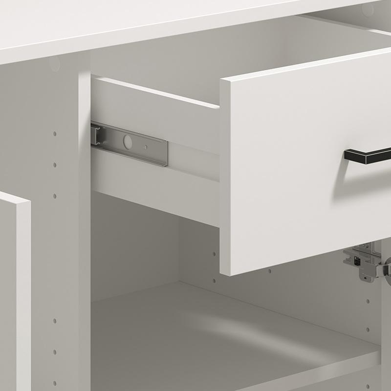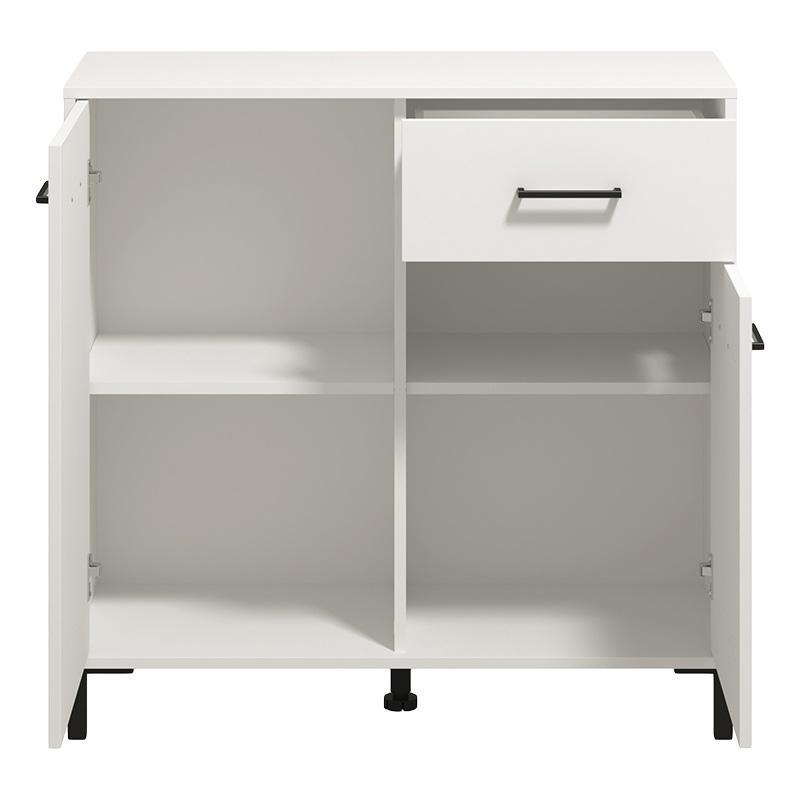 Its practical design includes two cabinets and a drawer, offering ideal storage space for clothes, personal items, documents or decorations. You can place a mirror, a lamp or some decorative elements on it, adding additional style and functionality to your space.