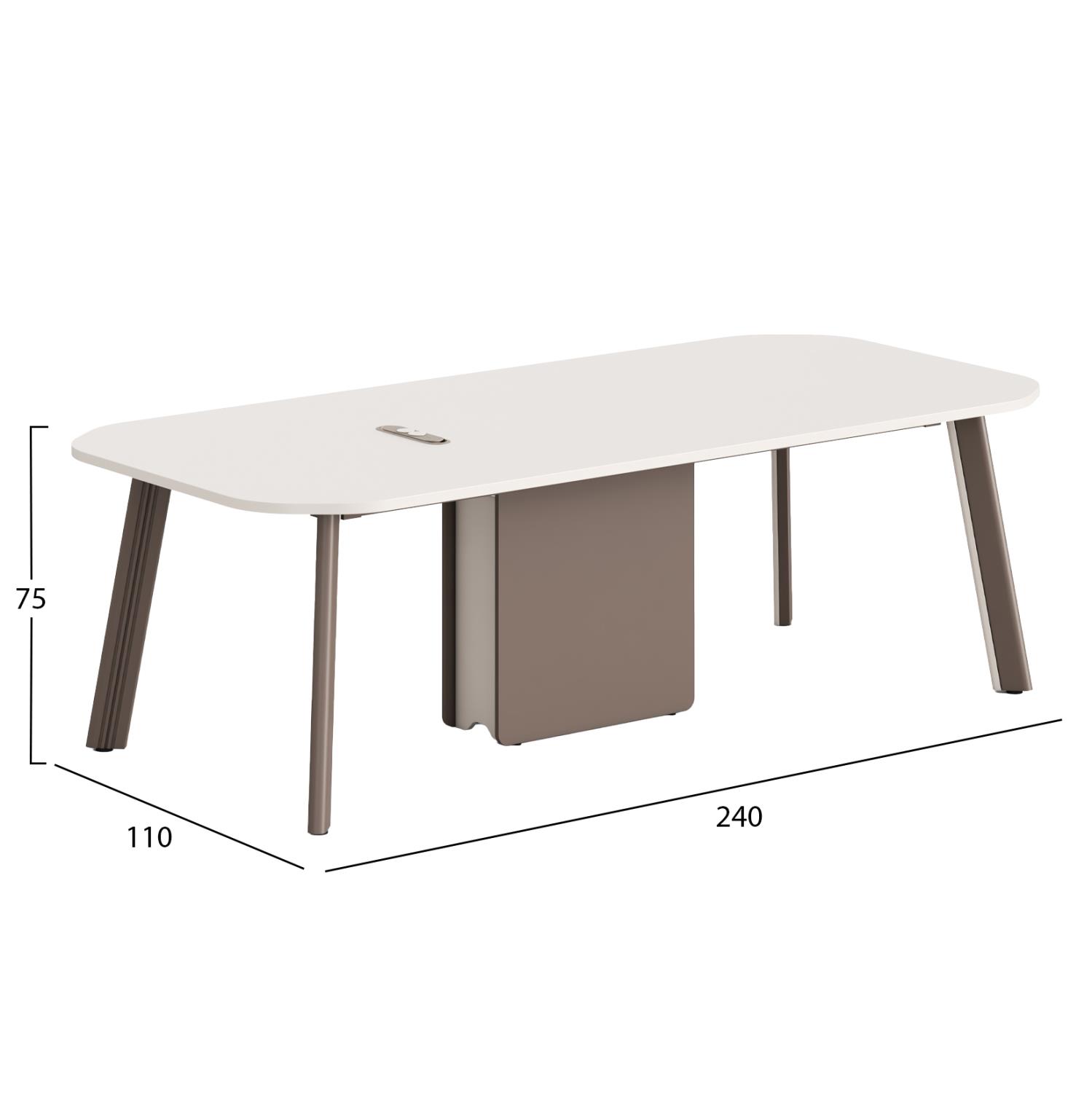 The rectangular NEWLINE conference table is a quality and modern proposal for your professional space. The two-tone of the CREAM colored top with the LIGHT BROWN aluminum legs, combined with its large dimensions, make it imposing in the space. Combine it with chairs or armchairs of a matching aesthetic and create a beautiful space for professional meetings.