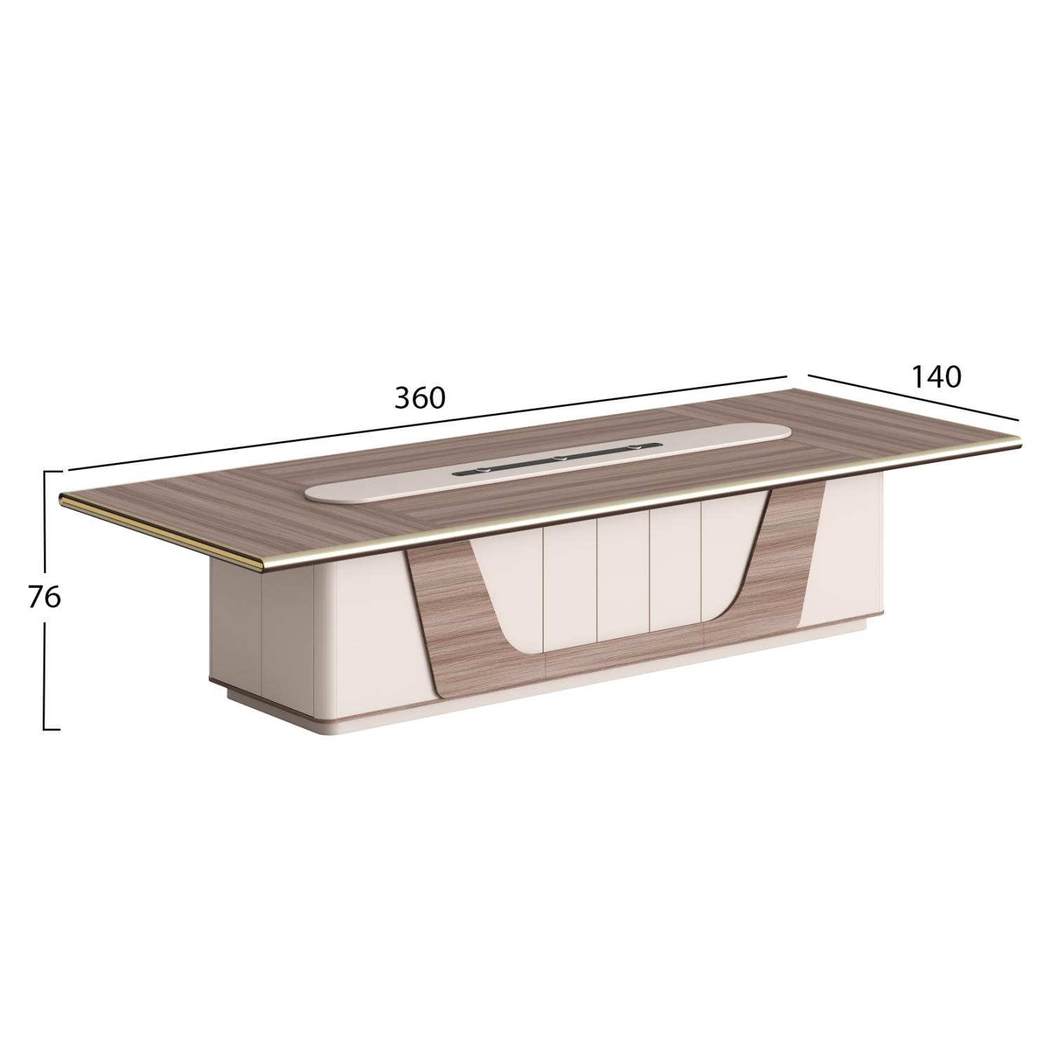 The rectangular SUPERON conference desk/table is a quality and modern proposal for your professional space. The two-tone of the NATURAL wood colored surface with the BEIGE base, combined with its large dimensions, make it imposing in the space. Combine it with chairs or armchairs of a matching aesthetic and create a beautiful conference space.