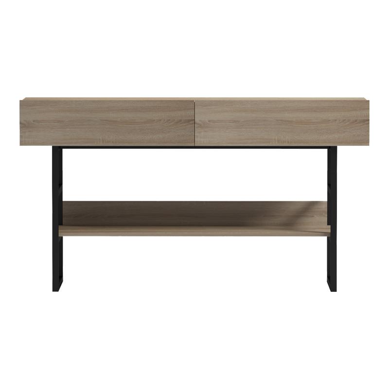 Upgrade your space with this stylish and functional console, ideal for your entryway, living room, or hallway. Combining a warm wooden surface with a durable matte black metal frame, it offers a modern industrial style that blends seamlessly into any contemporary decor.