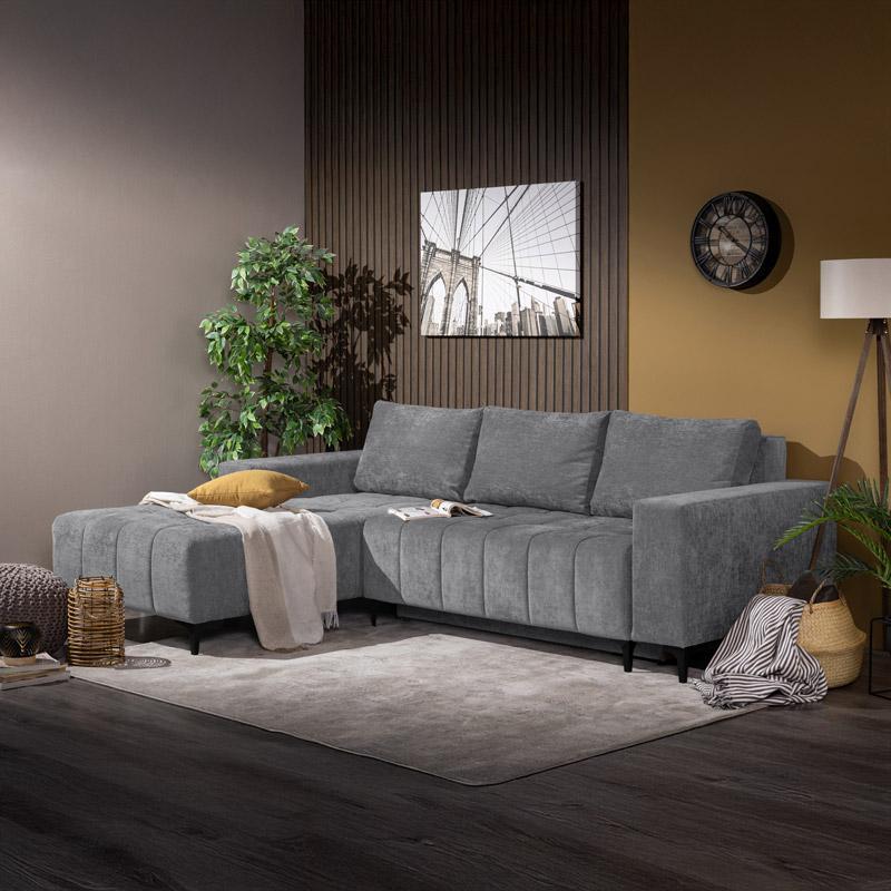 Γωνιακός Καναπές - Κρεβάτι Bogota Fylliana Αριστερή γωνία Ύφασμα Γκρί 245x184x80εκ.