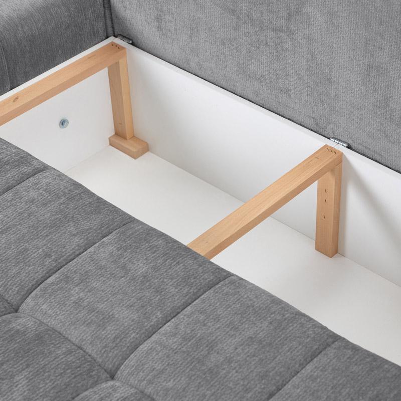 The Bogota corner sofa is the ideal choice for modern spaces that seek comfort, functionality and elegant design. With clean lines and modern aesthetics, it fits easily into any living room, offering practical solutions for everyday use. It has built-in storage space, ideal for blankets, pillows or other items, as well as an easy-to-use bed conversion mechanism, ensuring a comfortable sleeping space for you or your guests. Its comfortable seat and careful construction provide relaxation and durability over time. Bogota harmoniously combines functionality and modern design, constituting a practical, stylish and complete solution for every home.