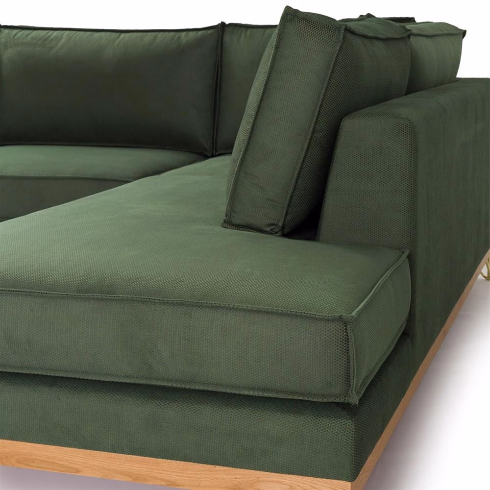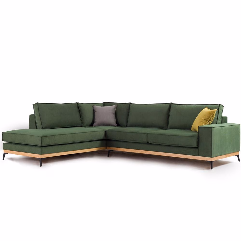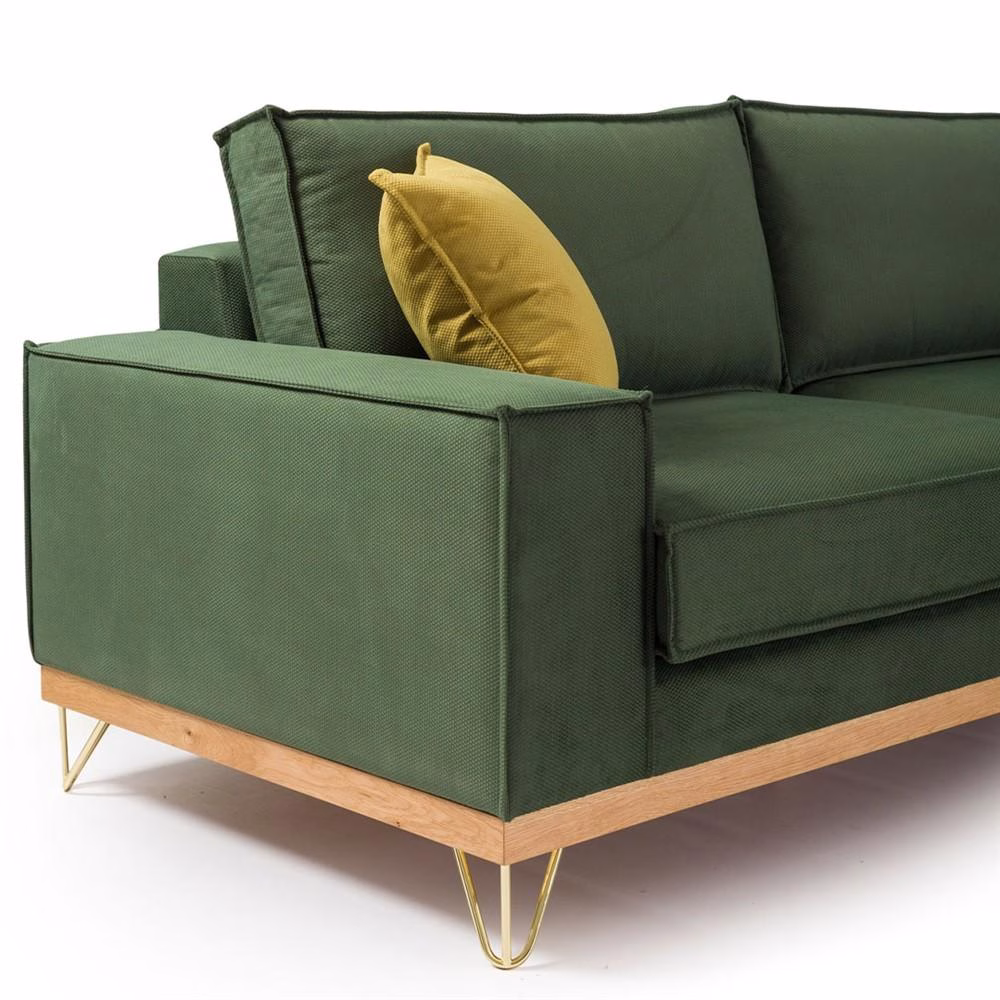 The PORTO corner sofa combines impressive design with exceptional aesthetics that will give a distinct character to your space. Decorated with decorative wooden accents in oak color and elevated with metallic legs, this sofa adds a sense of luxury and style. It comes with decorative cushions that add comfort and aesthetic appeal while providing additional support to the seat.