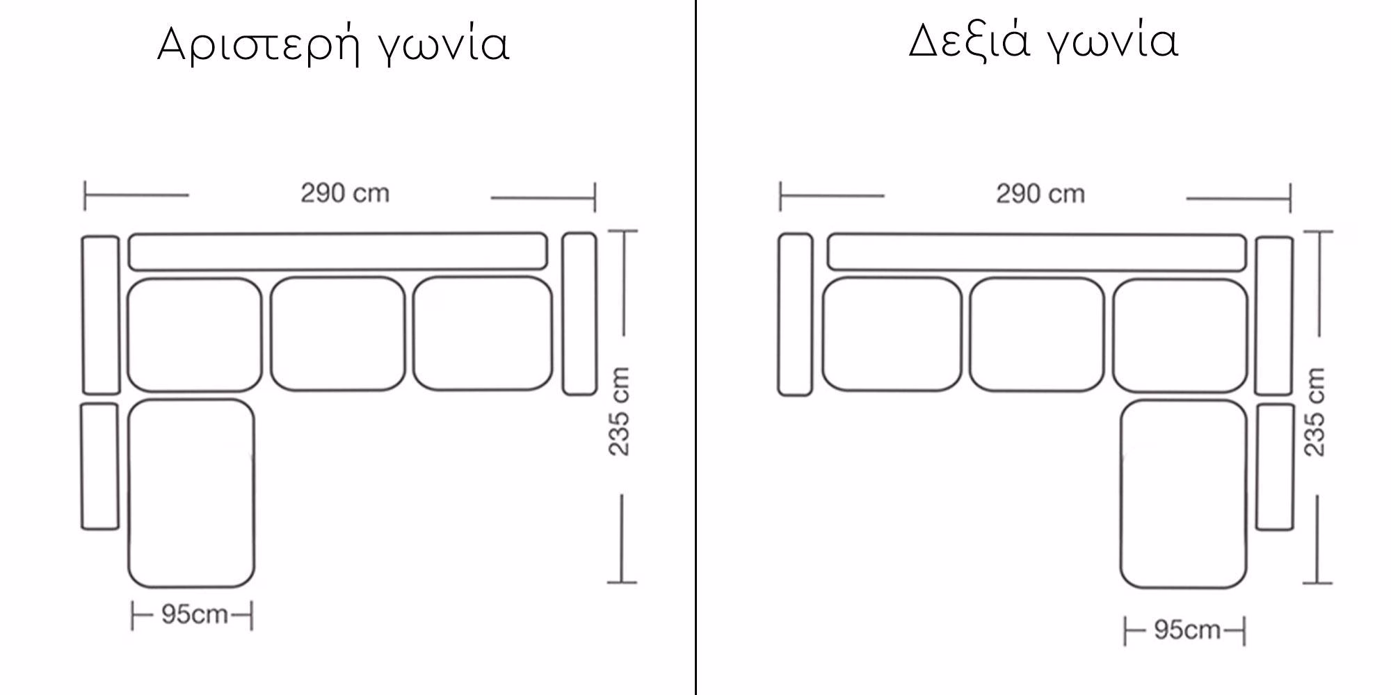 Width 290 cm / Depth 235 cm / Height 95 cm