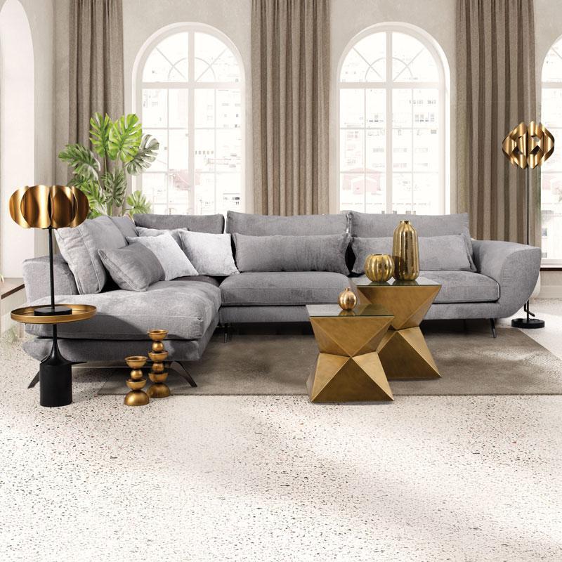 Γωνιακός Καναπές Renata Fylliana Αριστερή Γωνία Σκούρο Γκρί - Γκρί 340x240 εκ.