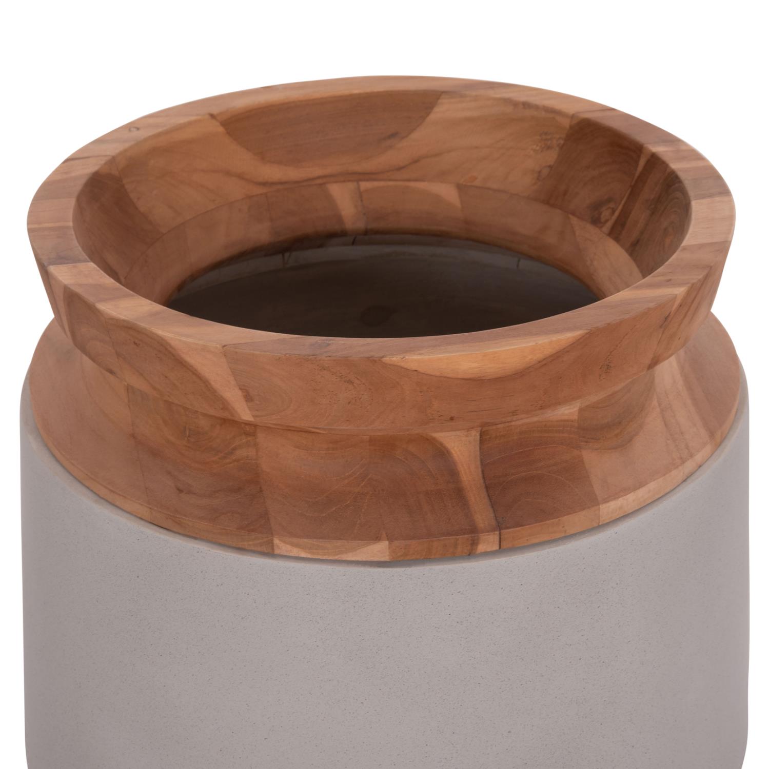 The handmade decorative floor vase LINTER is another new addition to our range for decorating any space. It is made entirely of Fiber Cement in GREY color with a rim made of quality Teak wood, while its dimensions make it imposing in the space. Ideal for a multitude of uses and spaces.