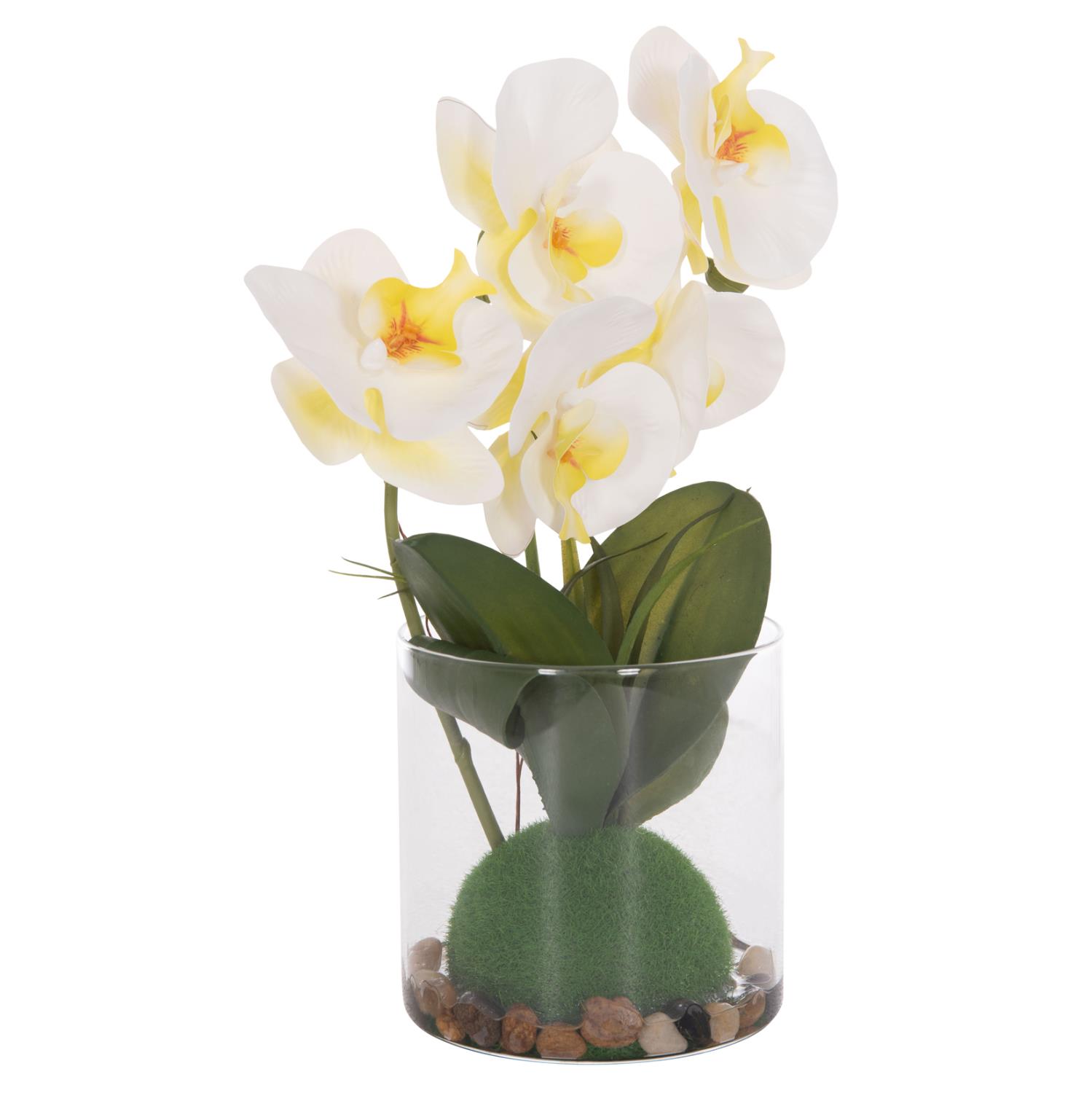 Διακοσμητικό Συνθετικό Φυτό Λουλούδι PHALAENOPSIS C4738 σε Γυάλινο Βάζο 12x24x30Υεκ