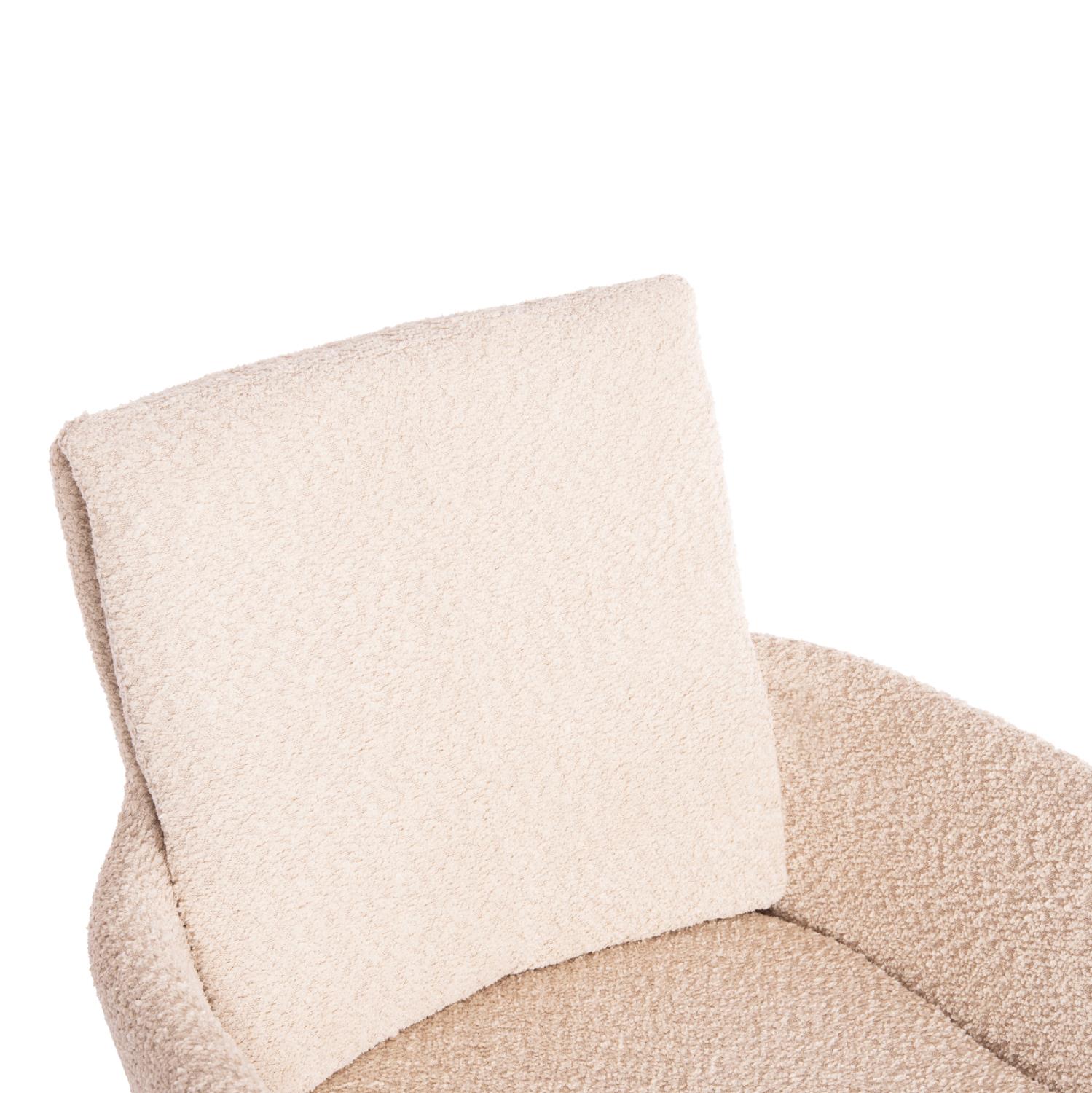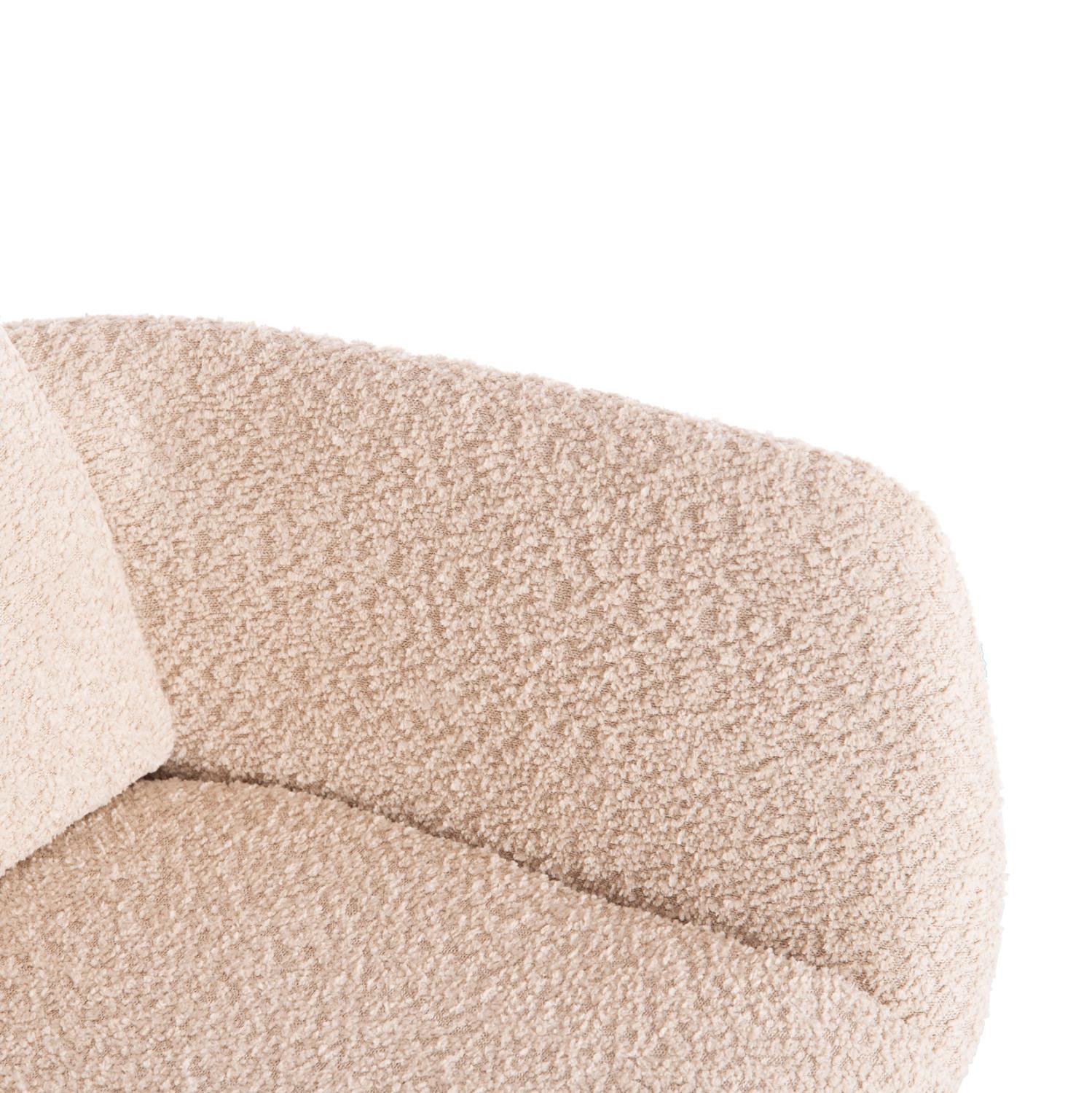 The whole armchair is upholstered with high-quality boucle fabric. This is any fabric that has a knot-curl in its weave. It is made of almost all raw materials (although it is usually synthetic) with special knotted threads or highly twisted threads, so that it has a curly surface. It does not wrinkle and can be plain, melange, checkered or tweed.