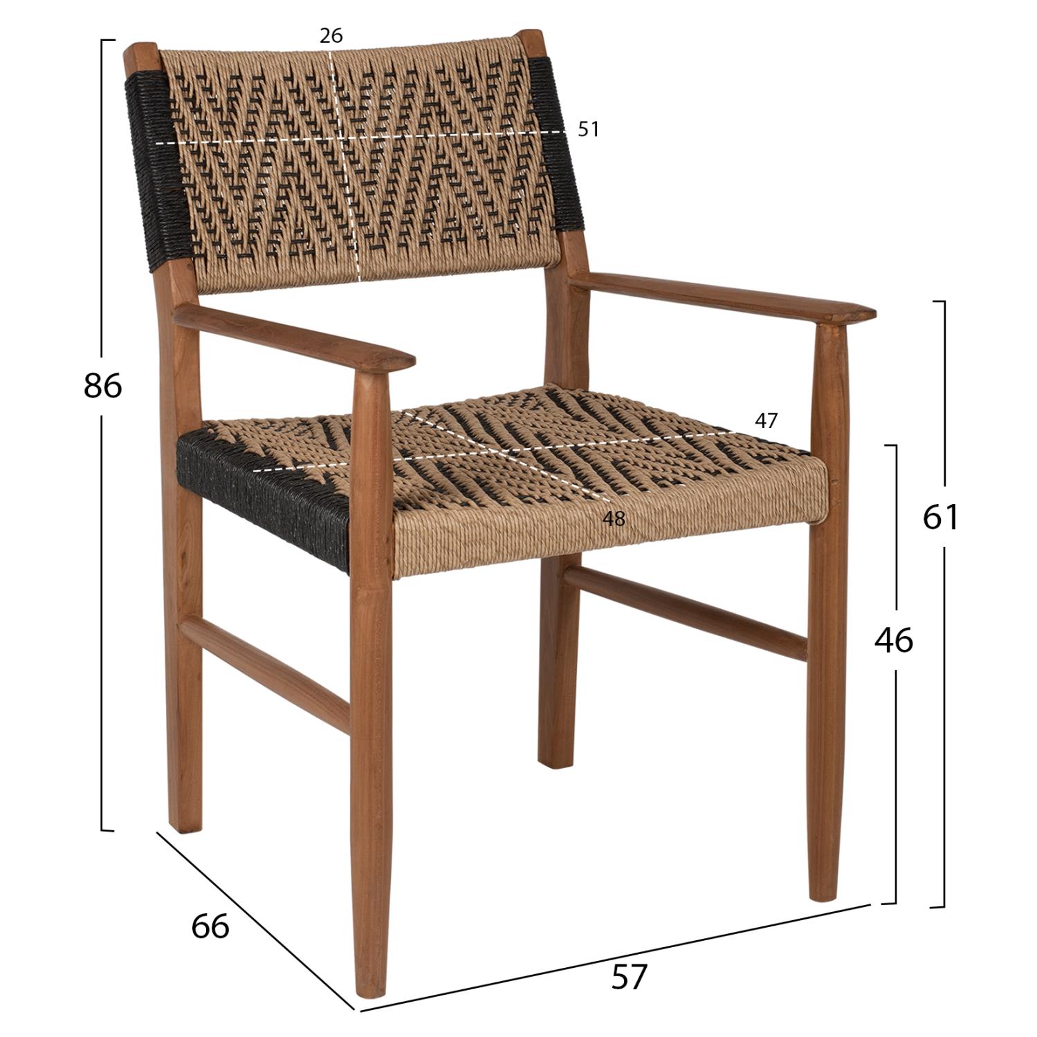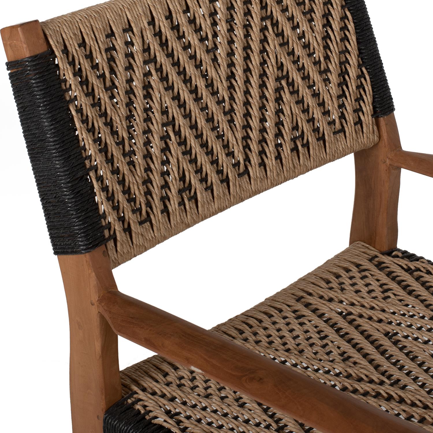 The frame of the armchair is made of excellent quality solid TEAK wood, which gives it sturdiness and great durability. When we refer to solid wood, we mean wood made entirely from the trunk of a tree. Solid wood is the most expensive choice in terms of wood but stands out for its timeless aesthetics.