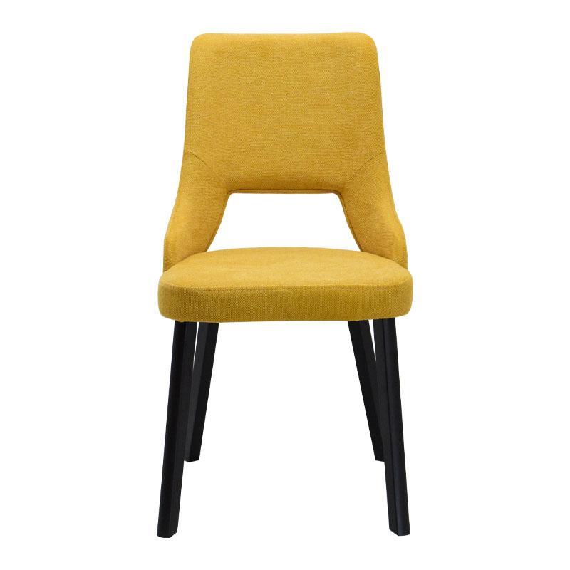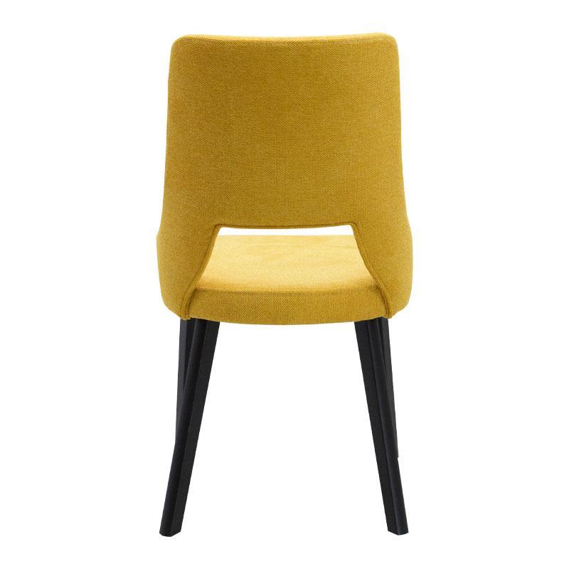 The Miriam chair is an excellent combination of modern aesthetics and functionality. With its elegant and simple line, it fits ideally in spaces with contemporary decoration, adding an air of luxury and comfort. The upholstery made of high-quality fabric in an ochre shade offers a warm and welcoming feeling, while the black wooden legs ensure stability and durability over time.