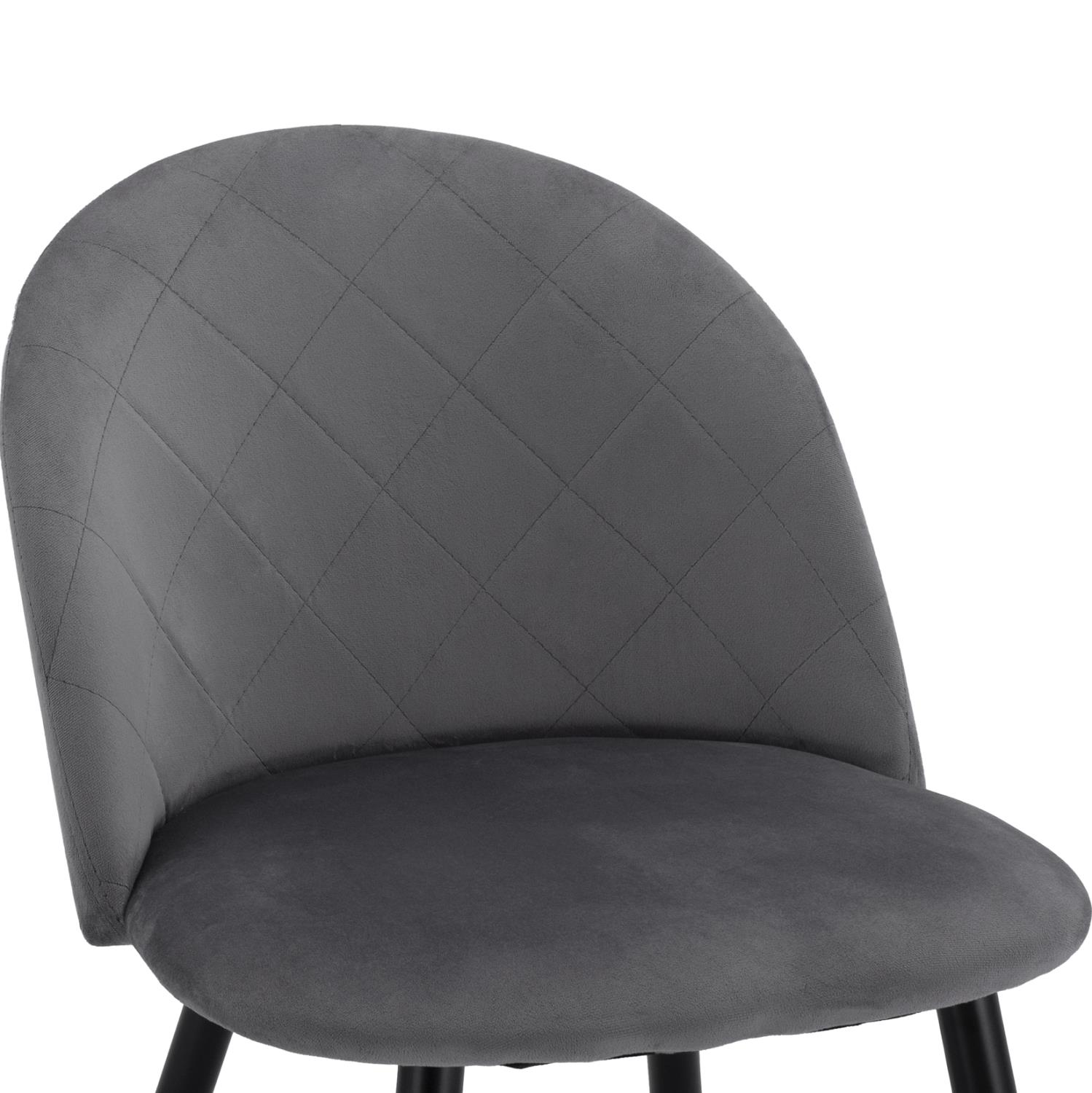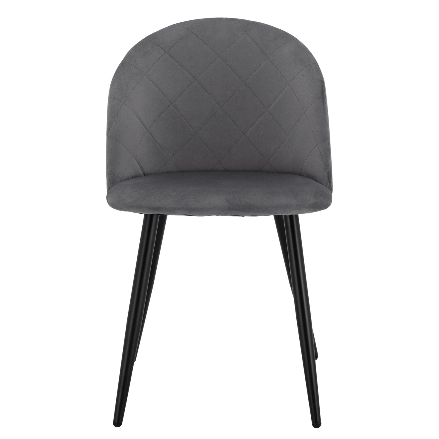 ODED chair upholstered in velvet fabric in gray and a black metal frame.