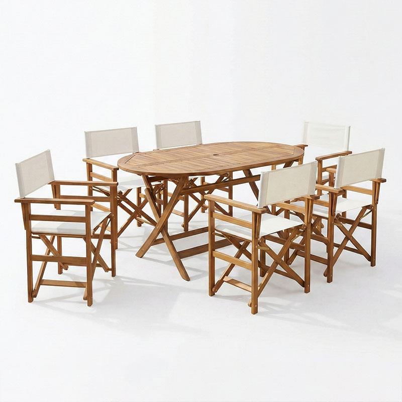 Dining room Bistrual-Falov set of 7 folding natural solid acacia wood 130x80x72cm