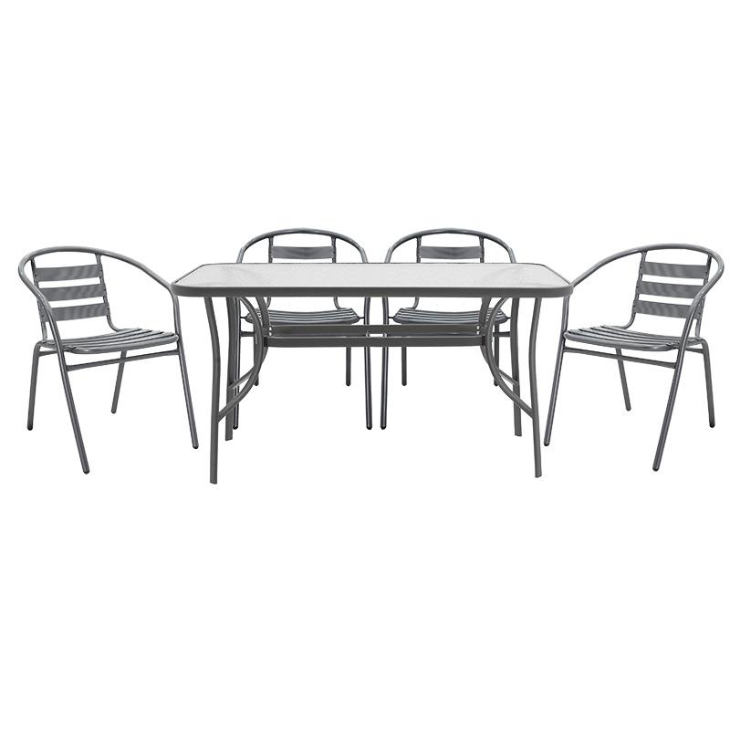 Dining table Ensure-Tade set of 5 metal-glass anthracite 140x80x70cm