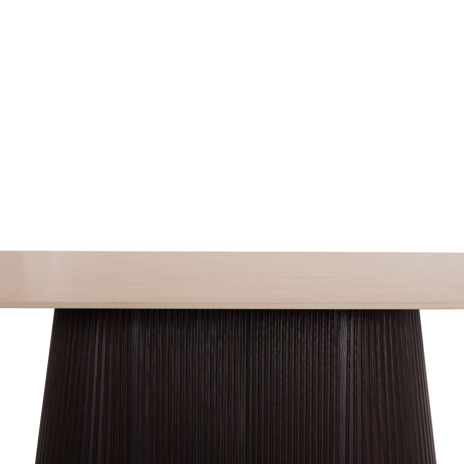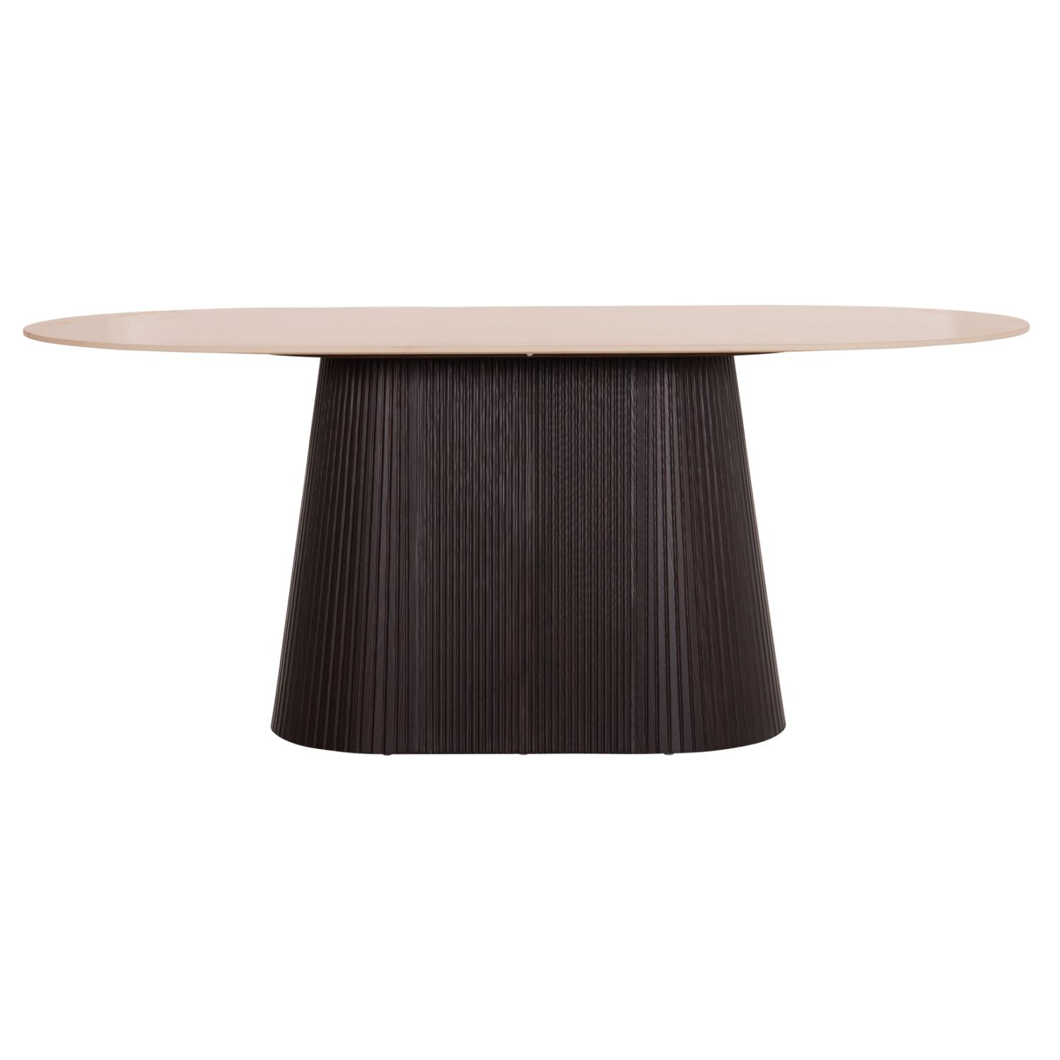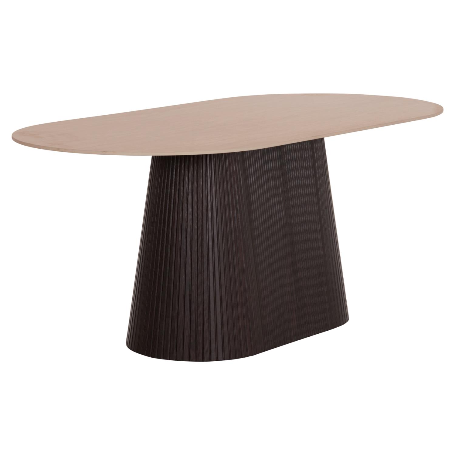 The CATER dining table is proper oval and constitutes a new addition to our range of products. Its flat tabletop is ceramic in TRAVERTINE STONE coloring, while its base is made entirely of MDF in DARK BROWN color, with beautiful pleats (corrugated).