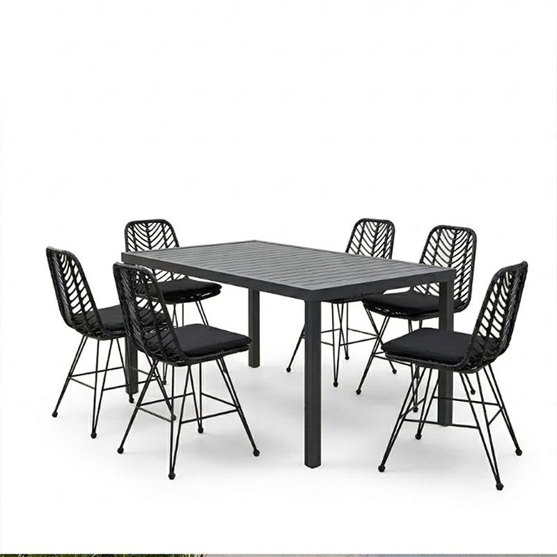 Set Dining table Naoki – Kliton II 7pcs anthracite aluminum and pe rattan in black shade 150x80x74cm