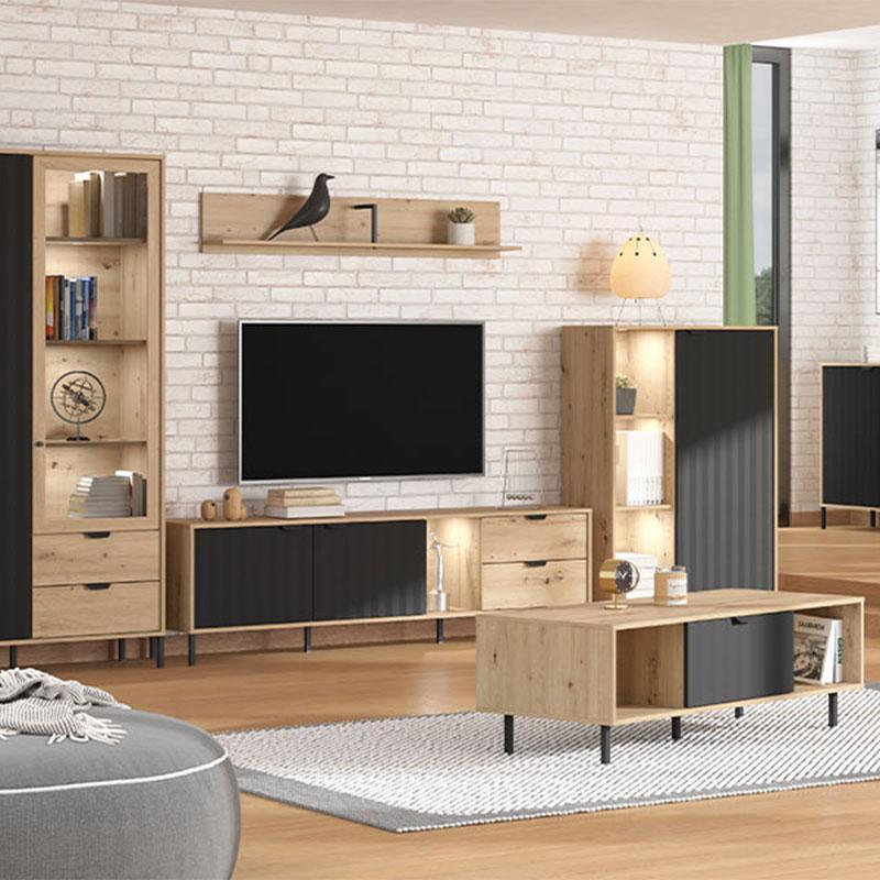 The artisan oak and matte black two-tone creates a special aesthetic contrast, combining the warmth of wood with the elegance of dark shades. The natural tone of the wood gives a sense of intimacy and warmth, while the black touches give a modern and industrial feel, making it an ideal choice for both contemporary and more classic decorative styles.
