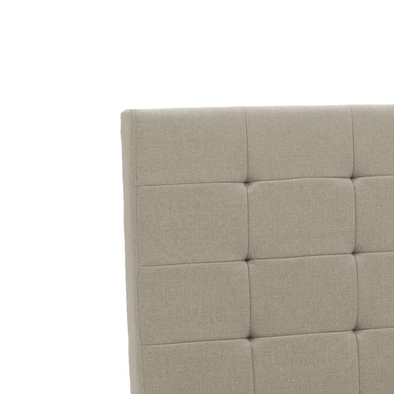 * The headboard is decorated with reinforced stitching in a square pattern, giving a sense of luxury.