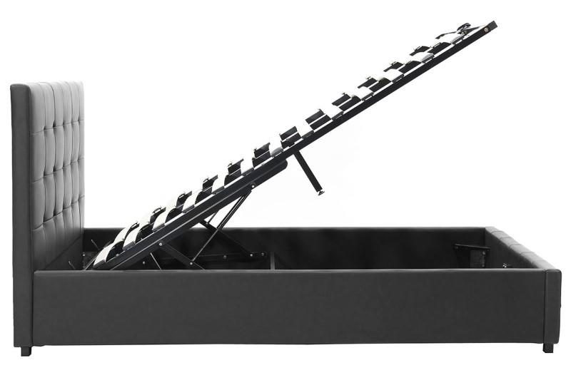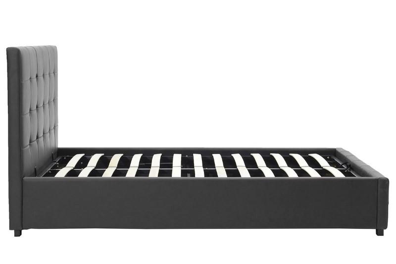 - It has a mechanism that lifts the boards, offering a large storage space whose base is covered with removable fabric.